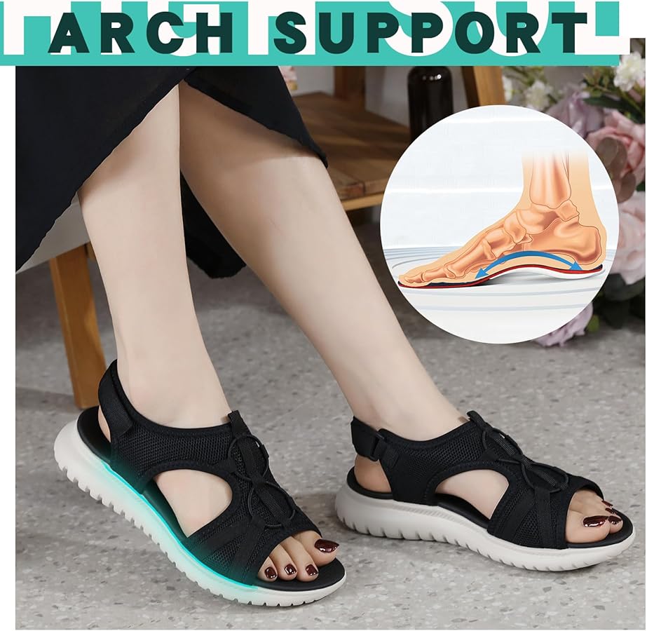 Acfoda Sandali Donna Estive Casual Sandalo Da Spiaggia Bassi Comodi Ortopediche Scarpe Nero 35