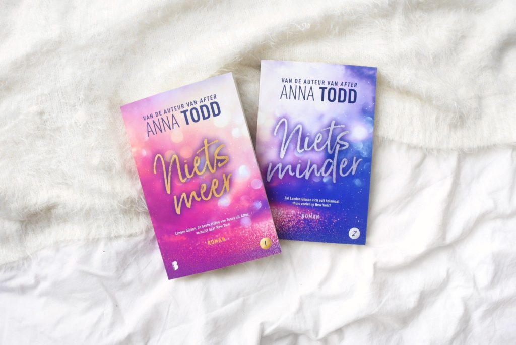 Helaas kwam ik er al snel achter dat ik Dakota geen leuk personage vond. Sterker nog, ik vond haar nogal irritant. Als lezer wilde ik Landon zo graag door elkaar schudden. Hij moet echt leren om voor zichzelf op te komen. Daarin vind ik dat Anna Todd alles veel te lang heeft gerekt. Mocht je de schrijfstijl van Anna in After trouwens heel fijn hebben ervaren, dan zal je ook blij zijn met Niets minder. Ze heeft dit boek met dezelfde beeldende manier geschreven. Je leest dit boek vanuit Landon en mede daardoor leer je hem toch op een hele andere manier kennen dan in de After serie. Ik vind het heel leuk dat Anna zo’n geliefd personage een eigen verhaal heeft gegeven.