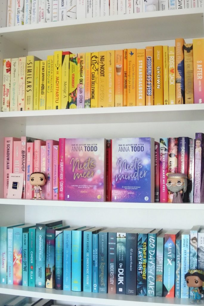 Niets meer en Niets minder leest eigenlijk weg als één boek. In de serie staat Landon zijn zochtocht naar liefde volledig centraal. Verder gebeurt er eigenlijk niets in de boeken. Het had de serie echt goed gedaan als Anna meer had toegevoegd. Er is een bij-personage in Niets meer, Posey. Ze werkt samen met Landon in het koffietentje. Haar verhaallijn werd langzaam op de achtergrond opgebouwd, maar in deel twee kwam dat vrijwel niet meer terug. Zonde! Toch heb ik deze boeken heel vlot gelezen. Anna heeft een hele fijne en beeldende schrijfstijl. Dat maken van Niets meer en Niets minder prima boeken om tussendoor te lezen. Leuk als je After hebt gelezen. Maar opzichzelfstaand is het geen sterk verhaal.