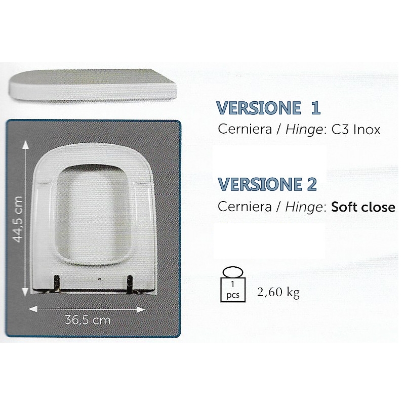 Copriwater Made in Italy. DMC - Copriwater Compatibile per Sanitari Hatria Daytime MOD. Giove in termoindurente, Colore Il Copriwater per HATRIA DAYTIME AVVOLGENTE è realizzato in DUROPLAST totalmente asettico e inattaccabile da parte dei comuni agenti patogeni. Copriwater per HATRIA DAYTIME AVVOLGENTE in TERMOINDURENTE BIANCO prodotto su dima del vaso originale. Il Copriwater per HATRIA DAYTIME AVVOLGENTE è fornito di cerniere in acciaio inox con chiusura normale oppure con sistema di chiusura rallentata ( Soft Close ). Cerniere in acciaio inox ad alta resistenza e inattacabili dalla ruggine, disponibile con chiusura normale o chiusura rallentata ( Soft Close ) Prestazioni altamente elevate e durature nel tempo Forma: Ovale con fondo squadrato - Lunghezza (mm): 435 - Larghezza (mm) 356 - Interasse (mm): 140 ÷ 180 Termoindurente resistente a prove di rottura estreme, ai graffi ed alle abrasioni, è assolutamente impermeabile e non infiammabile. Alta resistenza a graffi e rotture Elevata Robustezza Hatria Y1x201 Copriwater Per ASTRA SERIE 84 AVVOLGENTE TERMOINDURENTE BIANCO Cerniera Copriwater Hatria Prodotto testato su vaso originale Compatibilità Garantita Materiale plastico di alta qualità resistente a prove di rottura estreme, a bruciature e abrasioni ed è assolutamente impermeabile.