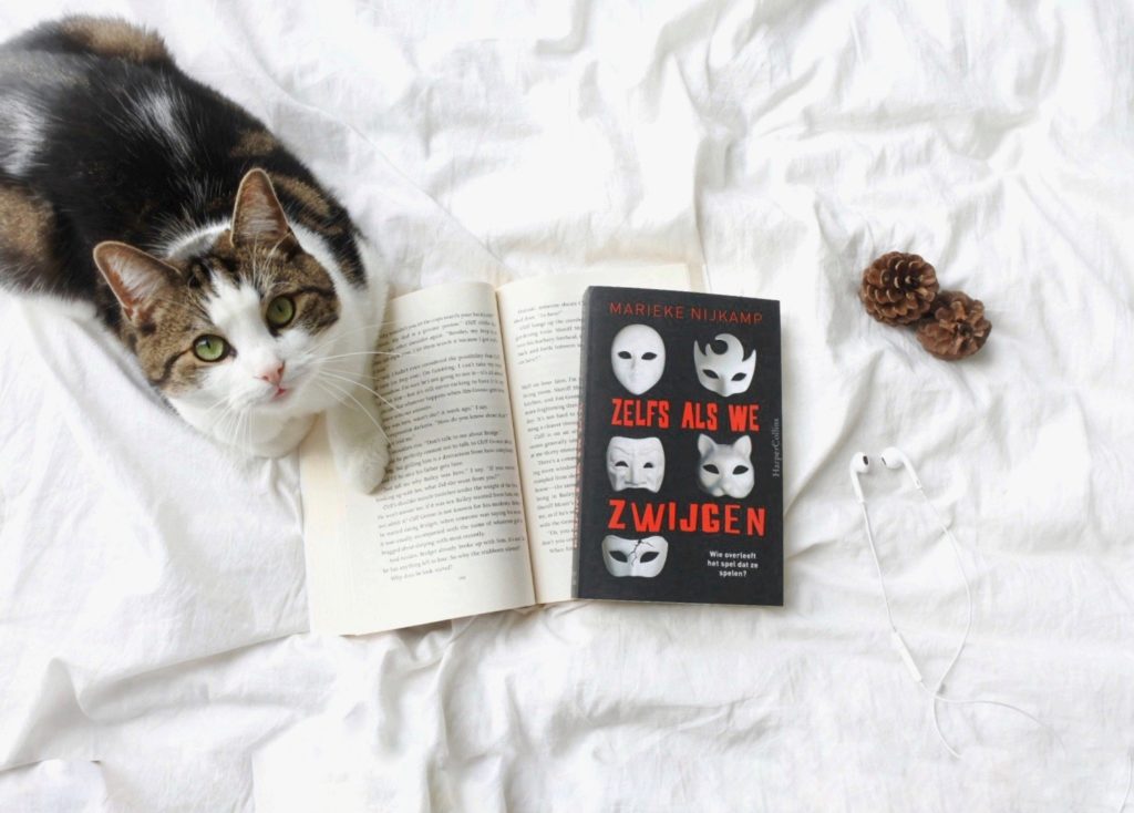Zelfs als we zwijgen is het perfecte boek voor deze oktober maand. Een groep vrienden in een afgelegen huisje in de bossen. Het klinkt cliché voor een mysterie verhaal. Maar in het geval van dit boek, heeft het heel goed uitgepakt. Ik las dit boek in een avond uit en dacht af en toe wel: oke durf ik nog te gaan slapen? Het snelle tempo dat Marieke dit verhaal heeft meegegeven wordt af en toe onderbroken door lange dialogen tussen personages. Dat had niet gehoeven van mij. Ik twijfel nog een beetje of ik Zelfs als we zwijgen 3,75 of 4 sterren wil geven. Maar feit blijft dat Marieke met dit boek een zeer vermakelijke YA thriller heeft neergezet! Een spannend en creapy verhaal om tijdens Halloween te lezen.