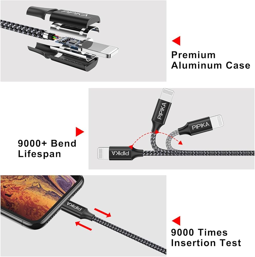 【 Cavo di ricarica per iPhone】 Cavo di ricarica iPhone è realizzato per un'elevata qualità della vita. Si prega di contattare il nostro team di supporto, quando si verifica un problema. Il design facile da usare rende la ricarica più semplice e comoda. Cavo per la ricarica 【Certificazione MFi】La Certificazione MFi e i severi test di qualità possono garantire che i dispositivi iOS vengano caricati e trasmessi in modo sicuro alla massima velocità. Gianac Cavo Iphone [2M 2 Pezzi] Cavo Lightning Certificato Mfi Caricatore Iphone Cavo Iphone A Ricarica Rapida Per Iphone 14/13/12/11/X/Xs/Xs Max/Xr/8/8 Plus/7/7 Plus/6S/6S Più /6/6 Più Cavi Mfi Per Iphone Cavo IPhone Corto 0.3M 2Pezzi USB Cavetto Lightning, Caricatore Carica Caricatore Iphone Originale Apple 【Soddisfa le tue esigenze】Riceverai 2 Cavo di Cavo iPhone da 2 M, garanzia di 24 Mesi e un servizio clienti cordiale. Cavo USB del telefono facilmente tutte le tue esigenze. È possibile utilizzare il telefono ovunque e in qualsiasi momento, senza dover aspettare !!! Non verrà mostrato alcun messaggio di avvertimento. 【Design ottimizzato】 Cavo Lightning Uso del Protezione della coda in silicone, custodia in alluminio + rete di cotone prolunga la durata del cavo dati.