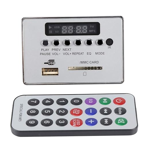 Compra Modulo Decodificatore MP3 Bluetooth 5.0 DC 6V‑12V Display Digitale Modulo Ricevitore Audio Wireless a Doppia Decodifica con Telecomando. SPEDIZIONE GRATUITA su ordini idonei Il brano e il volume della memoria di spegnimento possono essere memorizzati nella posizione corrente. Spegni memoria: supporta la funzione di spegnimento della memoria. Scheda Amplificatore Bluetooth JC-303 Bluetooth 5.0 Ricevente DAC Decoder Audio Modulo Bluetooth Mp3 Bluetooth Parametro: con display digitale, la distanza di ricezione Bluetooth è entro 15 metri, supporta la tensione di alimentazione DC 6V-12V, ampiamente utilizzata. Facile da aggiornare: l'aggiornamento dell'apparecchiatura audio generale consente di riprodurre più facilmente la musica in formato MP3, WMA, WAV. Funzione: con Bluetooth 5.0, la scheda di decodifica supporta USB, slot per schede TF, Bluetooth, FM, commutazione AUX, funzioni di regolazione del volume.