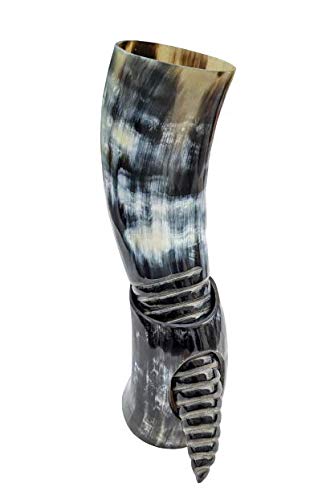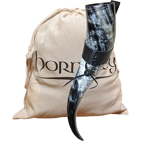 Ogni corno è un prodotto naturale e quindi nei colori nero, bianco e marrone. Di alta qualità e unico. Hornerey Trinkhorn T05S Viking 0.5 L with Wrought Iron Stand, Real Medieval Drinking Horn, Methorn, LARP : Beer Glasses Corno Vichingo Da Suonare Hornerey T05S Viking 0.5 L With Wrought Iron Stand, Real Medieval Corno Vichingo Per Bere Un must per tutti i fan dei vichinghi Evitare l'acqua bollente per mantenere lo strato protettivo e la funzionalità. Con un volume di circa 0,5 l, ogni tromba offre spazio sufficiente per le bevande preferite, dall'idromele vichinga alla birra o al vino. Si consiglia di sciacquarlo accuratamente con acqua tiepida prima del primo utilizzo. Vero corno da bere | Il nostro elegante corno Hornerey con supporto è un vero prodotto naturale che entusiasma grazie alle sue esclusive venature e colori.