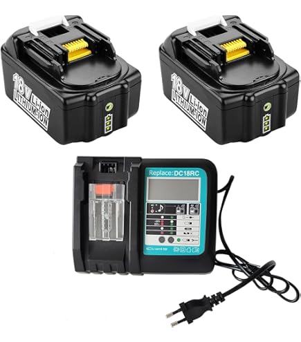FengBP® 2 X 18 V 5,0 Ah BL1850 batteria di ricambio con caricatore 3A per makita batteria DHR171Z DTM51Z DTD152Z TD110DZ DTD146Z dlm431z dub184 DGA404 DGA454 DGA504 DUB182 DUB183. URL Completamente compatibile con caricabatterie e batterie originali; ogni caricatore e batteria sono stati testati prima della consegna; protezione elettronica per protezione da sovraccarico, sovratensione e protezione da cortocircuiti; nessun effetto memoria grazie alla più recente tecnologia; la più recente tecnologia di ricarica consente una ricarica rapida e semplice delle batterie degli attrezzi, in modo che il tuo strumento sia utilizzabile in qualsiasi momento. Tipo di batteria: agli ioni di litio | Tensione: 18 V | Capacità: 5000 mAh/5.0 Ah | Wattaggio: 90 W | BL1850B batteria per Makita Caricabatterie a LED 3 A, 14,4-18 Volt, 100-260 V, 120 W, 50/60 Hz, caricatore rapido <br>BL1830, BL1820, BL1815, BL1825, BL1835 BL1845, 194205-3, 194309-1, 194204-5, 1966399 0196673-6, LXT-400 Tassellatore A Batteria Batteria Di Ricambio 18V 5.0Ah Con Caricatore 3A Per Tagliaerba Makita Batteria Einhell Compatibile con batteria Makita 18 V BL1850B, BL1850 BL1860B, BL1860, BL1840B, BL1840, BL1830B.