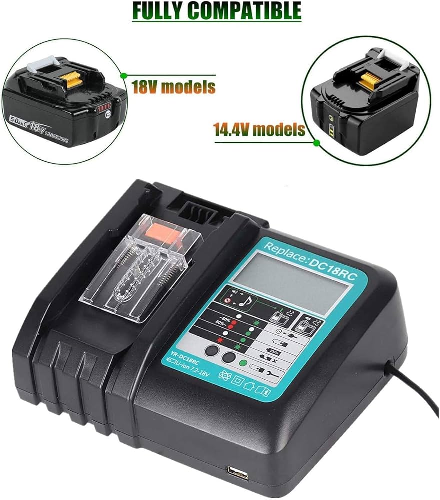 Batteria Di Ricambio 18V 5.0Ah Con Caricatore 3A Per Tagliaerba Makita