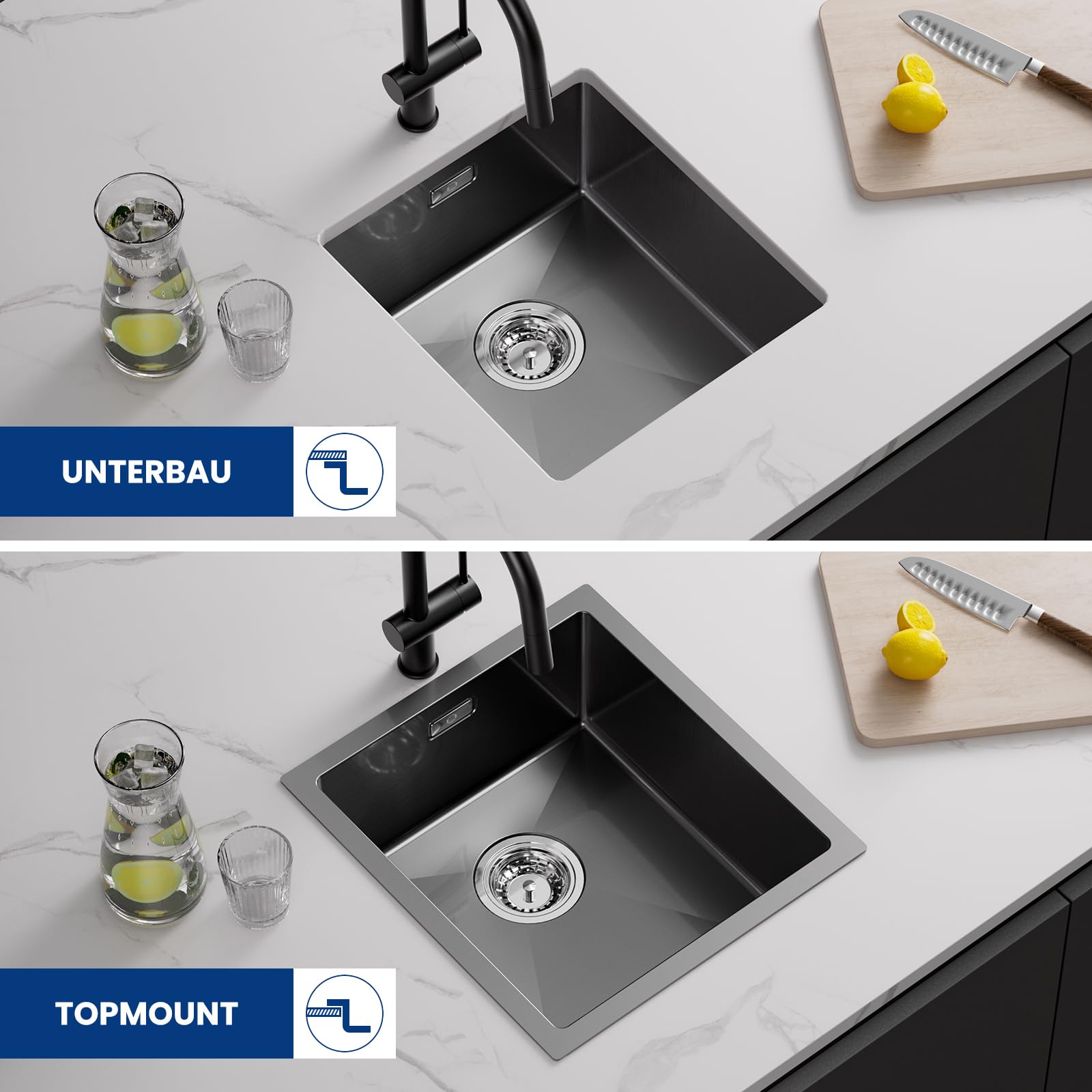 Kit completo per lavello: Il nostro kit contiene un lavello, un set di raccordi di scarico sifonici con sistema di troppopieno, una dima di taglio (37 x 42 cm), un paio di guanti e un manuale di istruzioni. Design di drenaggio efficiente: la parte inferiore del lavello da cucina in acciaio inox presenta un elegante profilo concavo. Anche in caso di esposizione prolungata all'umidità e di uso intensivo, conserva il colore e la forma originali. Dimensioni del lavello, esterno: 40 x 45 x 18 cm, interno: 35 x 35 x 18 cm. Inoltre, la superficie spazzolata del lavello è resistente alla corrosione, alla ruggine e alle macchie. CECIPA Lavandino Cucina 40x44cm, Lavello Cucina 1 Vasca in Acciaio Inox, Lavabo Cucina Moderno Con l'Ultimo Sifone e Troppopieno, Lavelli da Cucina : : Fai da teInformazioni su questo articolo Design moderno Per garantire la compatibilità del lavello con i vostri mobili, vi invitiamo a controllare attentamente le dimensioni sulla pagina del prodotto prima dell'acquisto - così potrà godersi subito il suo nuovo lavello senza imprevisti! Misure e installazione del lavello: schema riassuntivo Approfittate per completare il set acquistando anche questi accessori insieme al lavello. In combinazione con le linee di guida dell'acqua a forma di X, questo accelera drasticamente il drenaggio e impedisce all'acqua di accumularsi sul fondo del lavello. Il vostro lavabo perfetto: tutti i vantaggi in un colpo d'occhio Lunghezza mobile: Minimo 40 cm Lavelli In Acciaio Inox CECIPA Lavello Cucina 1 Vasca, Lavandino Cucina In Acciaio Inox 304 Almeno 40 Cm Dal Fondo Dellarmadio Con Dispenser Di Sapone Raccordi Di Scarico E Troppopieno 40 45 Cm 43948572 Lavello 45 Cm Prezzo Questa intelligente soluzione per il lavello da cucina non solo migliora l'efficienza del drenaggio, ma conferisce alla cucina un aspetto moderno ed elegante. Inoltre, oltre il 95% della parte inferiore del lavello è rivestito con uno spesso rivestimento anticondensa, che impedisce la formazione di condensa e garantisce che i mobili sotto il lavello rimangano asciutti. Tutti e cinque i lati del lavello in acciaio inox sono dotati di cuscinetti acustici che riducono significativamente il rumore generato dal flusso dell'acqua e dal lavaggio delle stoviglie.