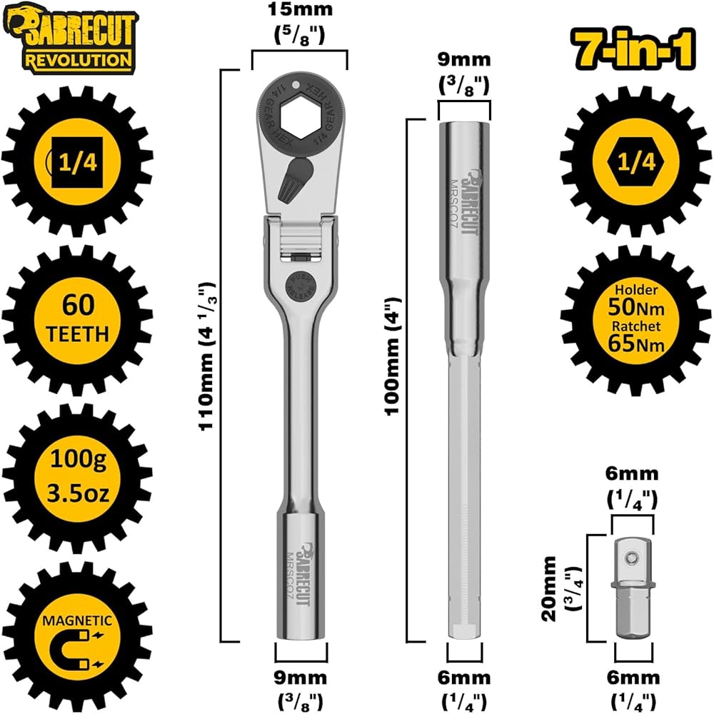 1 X SabreCut MRSC03 Mini-Mikro-Ratsche 1/4 Zoll Vierkant 6