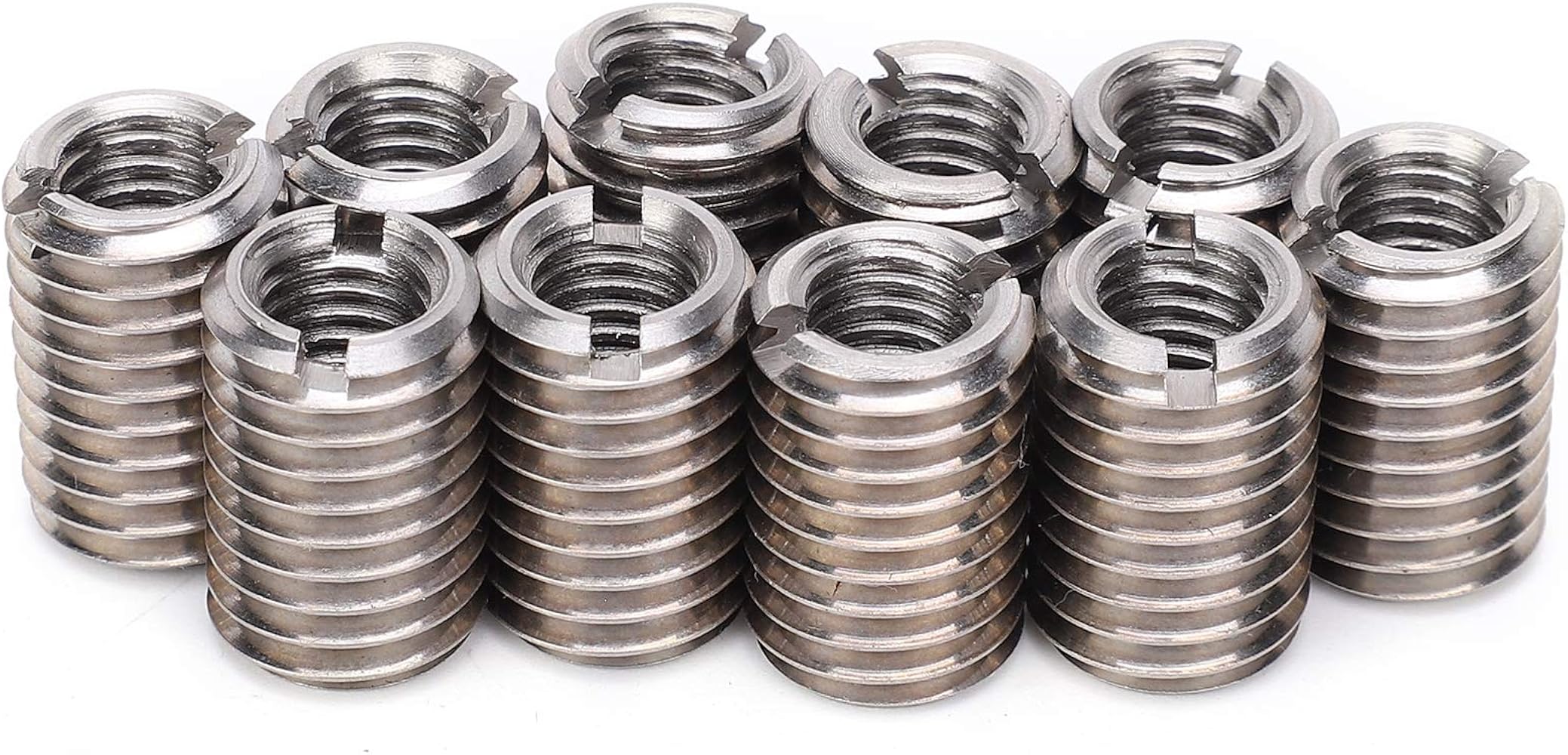 Dado Per Fori Filettati Dado Riduttore 10 Pezzi Filettato Inserto Di Riparazione Dado Dado Per Inserimento Filettatura Caratteristiche: le specifiche del dado di manutenzione sono standard, con filettatura interna M12 e filettatura esterna M16, e la capacità di riparazione è buona. Funzione: il dado di riparazione è facile da usare e il design scanalato aiuta a fissare e serrare facilmente le viti. Riparazione filettatura - Questo è un efficace strumento di riparazione filettatura in grado di riparare i fori filettati in modo conveniente. Alte prestazioni - Il dado di riduzione della filettatura possiede una struttura stabile, prestazioni eccellenti COME USARE: Se la filettatura M8 è scivolosa, se si desidera continuare a utilizzare la filettatura M8 dopo il restauro, utilizzare questo metodo per estendere prima la filettatura M8 alla filettatura M10, quindi utilizzare la lunghezza M8-M10-12 riduttore per riportarlo in M8, perché il dado di riparazione della filettatura è realizzato in acciaio inossidabile, quindi renderà la filettatura M8 più forte.
