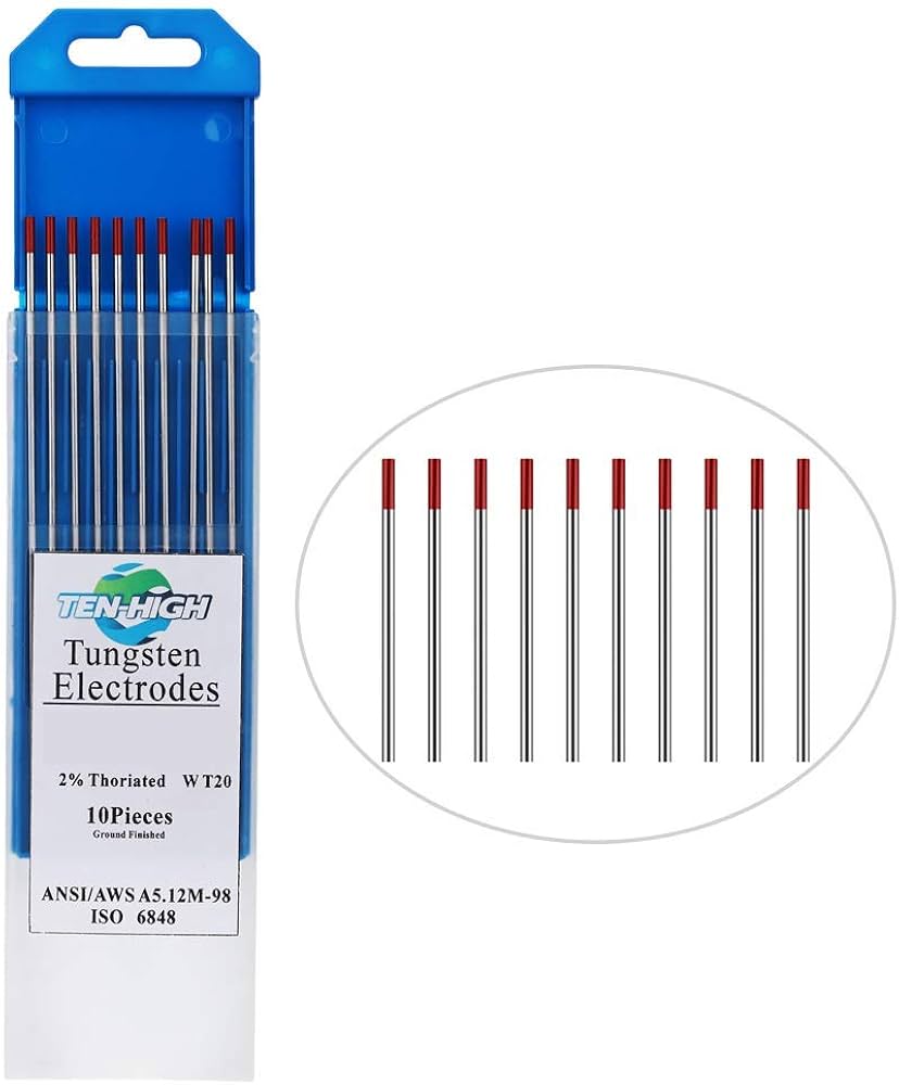 Adatto per la saldatura CC dell'acciaio al carbonio, dell'acciaio inossidabile, della lega di nichel e della lega di titanio. Dimensioni elettrico: 1/8x 7 & 3.2mm x 175 mm tig elettrodi tungsteno saldatura elettrodo gli per Elettrodo Tungsteno Toriato Elettrodo Di Tungsteno Puro, 10 Pezzi Tungsteno Per Elettrodi Elettrodi Di Tungsteno Per Tig