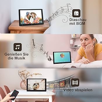 Regalo ideale La cornice digitale è un regalo altamente raccomandato per compleanno, matrimonio, festa di nascita, padre/festa della mamma, Natale, anniversario, celebrazione, ecc. Il supporto rimovibile consente di fissare il telaio alla parete. Telecomando incluso. Naturalmente, questa funzione può essere disabilitata. Calendario& Orologio & Sveglia Montaggio a parete Le tue impostazioni verranno salvate dalla cornice digitale e non è necessario reimpostare ogni volta. Risparmio energetico: grazie al sensore di movimento, lo schermo si accende quando la cornice digitale percepisce un movimento. Inoltre, la cornice elettrica si accende e si spegne automaticamente all'ora impostata, sia ogni giorno, nei giorni feriali o n YoJetSing - Cornice digitale USB da 32 GB Cornici digitali per mostrare i tuoi bei momenti Nella confezione riceverete una chiavetta USB da 32 GB, nessun acquisto aggiuntivo necessario. Puoi anche impostare un timer per accendere e spegnere il dispositivo e risparmiare più energia per il nostro pianeta comune. Plug & Play: nella confezione è inclusa una chiavetta USB 32G per facilitarne l'uso. Impostazione semplice È possibile regolare la luminosità della cornice digitale, il volume della musica e del video, la velocità della presentazione, gli effetti di transizione, il rapporto di visualizzazione, ecc. PRESTAZIONI ECCEZIONALI: IPS 1920*1080 Alta risoluzione, angolo di visione ultra ampio di 178°, luminosità dello schermo regolabile, rapporto di aspetto 16: 9 Schermo più adatto per le foto dei telefoni cellulari, offre immagini digitali da 10 pollici più chiare dell'80% delle cornici digitali sul mercato, in cui è possibile visualizzare perfettamente i vostri bei momenti e ricordi preziosi. Salva i tuoi momenti felici, gioiosi e divertenti con la tua famiglia e gli amici su una chiavetta USB e riproducili su una cornice digitale. Non è necessario installare software o app. Cornice per foto a risparmio energetico: questa cornice digitale è dotata di sensore di movimento ad alta sensibilità. Facile da usare, anche per anziani e bambini. Cornice digitale con sensore di movimento Se ci si avvicina entro un angolo di rilevamento di 180° e di 3 m, la cornice digitale si accende automaticamente, altrimenti entra in modalità di sospensione. Accensione/spegnimento automatico La cornice digitale può essere accesa e spenta nei momenti impostati, sia ogni giorno che solo nei giorni feriali o nei fine settimana, ideale per l'uso in ufficio o come visualizzazione automatica di segnaletica digitale. Cornice digitale con USB Plug and Play, la cornice digitale supporta unità USB, scheda SD/MS/MMC/SDHC fino a 32 GB. Ottima idea regalo: la cornice digitale con sensore di movimento è un regalo perfetto per la famiglia, gli amici, ottima idea per la festa della mamma, la festa del papà, Natale, Capodanno, Ringraziamento, cerimonie come matrimoni, compleanni. Basta inserire una chiavetta USB o una scheda di memoria (SD/MS/MMC/SDHC) per visualizzare immediatamente le tue foto e i tuoi video preferiti sulla cornice elettronica! (fino a 32 G). FUNZIONI UTILI: questa cornice elettronica non solo può riprodurre foto, video o musica in ordine o in modo casuale, ma riproduce anche foto con musica di sottofondo in presentazione con molti effetti di transizione. Cornici Portafoto Digitali Cornice Digitale 10 Pollici, Cornice Elettronica 1920 X 1080P Cornice Digitale Alta Qualità