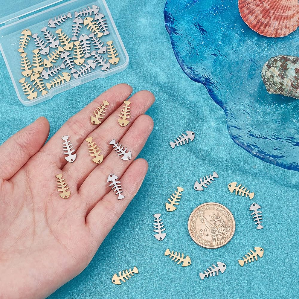 UR URLIFEHALL 100 Ciondoli A Lisca Di Pesce In Acciaio Inox 201, A Forma Di Oceano