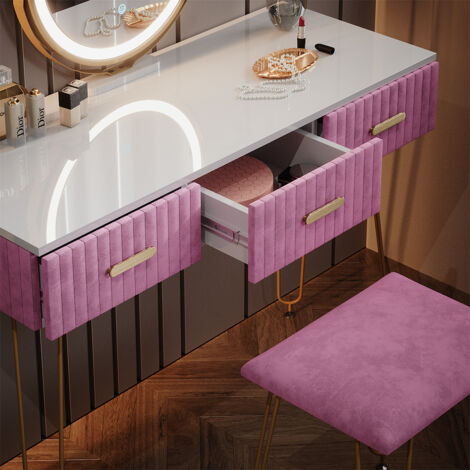 Vicco Tavolo Da Toeletta Layla, Rosa, 100 Cm Con Illuminazione LED E Sgabello 93177826