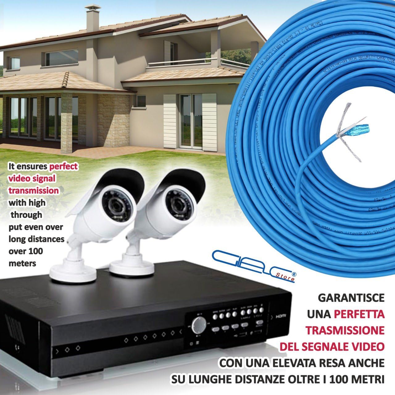 Ideale per impianti di sicurezza residenziali e commerciali che richiedono alta affidabilità e qualità video superiore. La scala metrica stampata lungo il cavo facilita l'installazione e il dimensionamento. Mini Telecamera Cavo Coassiale 100 M RG59 Settentrioneimpy Pro/Corrente + Video Cavo Cavo Rg58 Il cavo coassiale mini RG59 Area Illumina è la soluzione ideale per sistemi di videosorveglianza professionali. La struttura include un conduttore in rame 100%, rivestimento in polietilene a bassa densità da 1,9mm e una robusta calza esterna con foglio in alluminio da 0,06mm. VERSATILITÀ: Adatto per uso esterno e cavidotti interrati, resistente ai raggi UV, ideale per sistemi di videosorveglianza TVCC Tipo di cavo. Coassiale Rg59 Mini ; Dispositivi compatibili. Telecamere Tvcc ; Caratteristica speciale. Impedenza 75 Ohm, Conduttore In Rame 100%, 4k Ultra Hd Questo cavo combinato da 100 metri offre una trasmissione video 4K impeccabile e alimentazione integrata, perfetto per telecamere TVCC. Con un'impedenza di 75 Ohm e un diametro complessivo di 6,5mm, garantisce prestazioni ottimali anche su lunghe distanze oltre i 100 metri. SPECIFICHE TECNICHE: Cavo con impedenza 75 Ohm, conduttore solido da 0,04 mm 100% Rame e dimensione complessiva di 6,5 mm di diametro