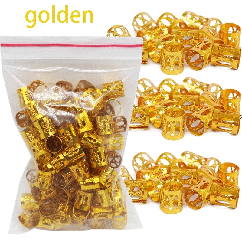 100 Pezzi Dreadlocks Dorati E Scheggiati Perline Anelli A Treccia Per