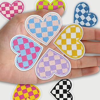 100 Toppe A Forma Di Cuore Termoadesive Su Griglie Bianche Nere Ricamate Toppe Applique Fai Da Te Per Borse Per Vestiti