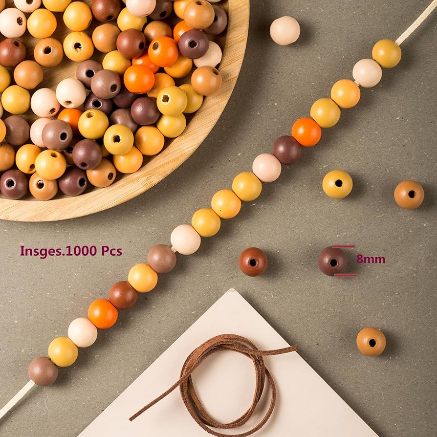 Perline Legno Abete 1000 Perline Di Legno Colorate Rotonde Da Infilare, Perline Per Perline Per Collane Autunno perline di legno Maillard per scene paesaggi autunnali 1000 perline di legno naturale colorate da 8 mm, rotonde, con foro, sfere di legno, per fai da te, decorazioni fai da te, acchiappasogni, accessori macramè, tessitura di perle, bracciali, collane Palline di legno marrone per Halloween La superficie è pulita e liscia, ideale per fare artigianato. Le perline di legno colorate sono disponibili in cinque colori: marrone chiaro, marrone scuro, bianco, arancione, giallo chiaro, sono perfette per l'atmosfera autunnale con colori come foglie che cadono e un raccolto lussureggiante Sfere di legno sono in legno, È lucido, sono in Maillard autunno Ognissanti stile. Il diametro delle perline di legno è di circa 8 mm con foro, è possibile combinare facilmente le perline con corda o altre decorazioni.
