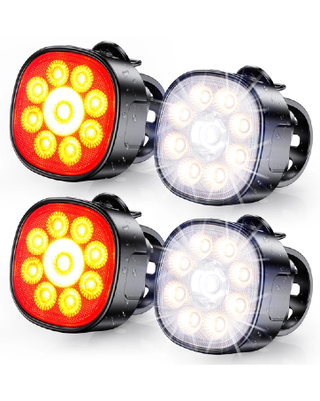 Luce Per Bicicletta Set Di Luci Per Bici 1000lm Luce Anteriore Per Bicicletta Luminosa Con Kit Luci Bici Decathlon LED ad alta intensità: le luci della nostra bicicletta sono dotate di LED ad alta intensità, che offrono un'illuminazione eccezionalmente luminosa e chiara. CIRYCASE Luci Bici Anteriori & Posteriori. Set di luci per bicicletta con un design unico e molteplici modalità di illuminazione. Le luci anteriore e posteriore sono dotate di 2 LED principali e 19 LED ausiliari, con interruttori indipendenti per controllarle Questo assicura che il tuo percorso sia ben illuminato e che altri utenti del binario possano vederti da lontano. Facile da installare: non è necessario alcun attrezzo aggiuntivo. Le luci si fissano saldamente alla tua bicicletta con supporti in silicone regolabili, compatibili con la maggior parte dei manubri e dei montanti. Durata della batteria: goditi una lunga durata della batteria con le nostre luci per bicicletta, che possono funzionare fino a 8 ore con una singola carica, a seconda della modalità di illuminazione selezionata. Con il cavo USB incluso, è possibile ricaricare facilmente le luci tramite qualsiasi porta USB disponibile