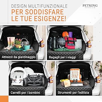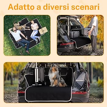 INSTALLAZIONE VELOCE E STABILE - 8 cinturini in chiusure a strappo e 2 bottoni automatici sui poggiatesta per un fissaggio stabile. Realizzato con poliestere 210D, possiede una buona resistenza alle rughe e mantenimento della forma. La protezione del bagagliaio può essere facilmente installata e rimossa in un minuto. Proteggi il tuo Cargo Liner completamente da liquidi, sporco, graffi e capelli. La ciotola per cani pieghevole aggiuntiva mantiene il tuo cane idratato. La confezione contiene 8 Velcro +2 Velcro (Sorpresa). Non preoccuparti. Dimensioni Norma: 185*103 cm; XL: 208*138 cm Dimensioni 45*45*25cm Colore Nero Il paraurti è ben protetto dallo sbalzo durante il caricamento o l'imbarco di un cane! L'intera rete antiscivolo aggiornata ha prestazioni migliori e più consistenza. Colore Nero & grigio Colore Nero Dimensioni Norma: 185*103 cm; XL: 208*138 cm IMPERMEABILE ED ESTREMAMENTE FACILE DA PULIRE - grazie al materiale Oxford 600D impermeabile e all'imbottitura in cotone PP. Buona l'imbottitura, confortevole per il mio cane, antiscivolo nella parte posteriore che lo rende anche sicuro, le due sacche porta oggetti sono comodissime PROTEZIONE COMPLETA DEI BAGAGLI - La coperta resistente e resistente allo strappo con protezione laterale protegge il baule da sporco, graffi e peli di cane. Auto Impermeabile Cane Toozey Telo Auto Per Cani Bagagliaio, 185 * 103 Universale Robusto Coprisedile Auto Coperta Per Cani Con Laterale&Paraurti Protezione, Antistrappo/Impermeabile/Antimacchia/Antiscivolo, Nero - XL Coprisedili Auto Trasportino Per Cani UNIVERSALE APPLICABILE - L'ampio coperchio del bagagliaio (208 x 138 cm) si adatta universalmente alla maggior parte delle aree standard del veicolo. 2 GRANDI BORSE E PANNELLO PIEGHEVOLE - Il guinzaglio o il giocattolo possono essere riposti ordinatamente. Dotato di Oxford 600D, puoi pulire facilmente l'acqua. Nessun odore fastidioso.