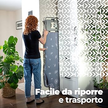 Ideale per chi cerca un prodotto non solo funzionale ma anche esteticamente piacevole. Vaporella Ferro Da Stiro KADAX Asse Da Stiro 110 X 30 Cm Con Altezza Regolabile, Supporto Per Asse Da Stiro Foppapedretti Le gambe in acciaio dell'asse sono equipaggiate con piedini antiscivolo, che garantiscono massima stabilità durante l'utilizzo. Le robuste gambe in acciaio sono dotate di piedini antiscivolo che impediscono movimenti indesiderati, offrendo un'ancora sicura su qualsiasi tipo di pavimentazione, sia essa piastrelle della cucina, del bagno, pannelli di un soggiorno o persino il pavimento di un balcone. Facile da usare: il nostro tavolo da stiro è dotato di molti miglioramenti. · Estremamente durevole: l'asse da stiro Esio è realizzato in robusto alluminio Porta-ferro: L'asse include un porta-ferro integrato, offrendo una soluzione pratica per appoggiare il ferro da stiro sia quando non è in uso che durante le pause. Regolazione dell'altezza: L'asse da stiro è dotato di un sistema di regolazione dell'altezza che si adatta perfettamente alle preferenze individuali dell'utente. L'asse da stiro si presenta come una soluzione Stabilità: Le gambe in acciaio dell'asse sono equipaggiate con piedini antiscivolo, che garantiscono massima stabilità durante l'utilizzo. L'esperienza di stirare diventa così non solo più comoda ma anche gradevolmente integrata nell'ambiente domestico. L'asse da stiro è dotato di un sistema di regolazione dell'altezza che si adatta perfettamente alle preferenze individuali dell'utente. Questo modello si distingue per il suo design minimalista e accurato, che si integra perfettamente con qualsiasi tipo di arredo senza risultare invadente. L'asse include un porta-ferro integrato, offrendo una soluzione pratica per appoggiare il ferro da stiro sia quando non è in uso che durante le pause. Dal punto di vista della funzionalità l'asse da stiro KADAX è progettato con particolare attenzione alla stabilità. Questa compatta dimensione, unita alla leggerezza dei materiali, facilita il trasporto e la movimentazione dell'asse, rendendola una scelta ideale per chi cerca funzionalità senza rinunciare all'estetica e alla praticità quotidiana. Risparmio di spazio: L'asse da stiro è progettata con una struttura pieghevole che consente di riporlo facilmente quando non in uso. Ciò previene danni sia all'asse che ai capi stirati.