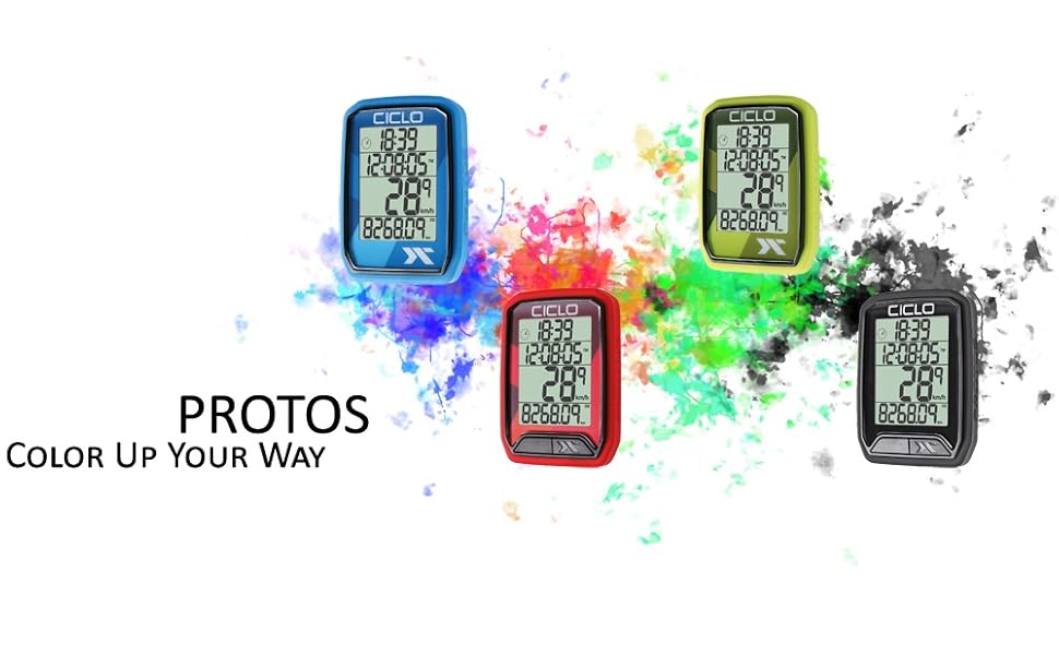 This cycle computer offers simple and intuitive control using a pair of buttons and an extra clear 4-line display that allows you to display almost all the necessary functions at once. A robust replaceable protective rubber cover around the perimeter of t 2 tasti 13 funzioni: qui ce n'è per tutti i gusti: velocità (corrente / media / max), confronto velocità, tempo di percorrenza totale e tempo di percorrenza totale, distanza e chilometri totali, funzione pendolare leggera e leggera, kcal (corrente e totale), auto start/stop, orologio 12/24, indicatore di cambio batteria Design fresco: il protos ottiene un design fresco e moderno grazie al suo cinturino in vero silicone sul lato; la banda in silicone non è solo elegante, ma offre anche una protezione aggiuntiva in caso di caduta Contachilometri Bici CICLO PROTOS 113 Wired Bicycle Computer With 13 Functions Misuratore Di Potenza Per Ciclismo 4 colori potenti: il nuovo protos è disponibile nei colori verde, rosso, blue, classico nero; così potete personalizzare la vostra bicicletta con un protos corrispondente Display a 4 righe: con il grande e facile da leggere display a 4 righe si ottengono esattamente le informazioni necessarie