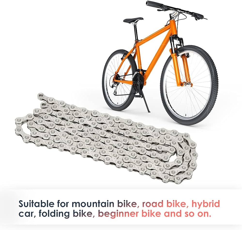 Catene Per Biciclette 10 Velocità EVTSCAN Catena Per Mountain Bike A 11 Velocità, 116 Maglie 1/2x11/128 Pollici Per Bici Multi Velocità, Per Cambi Di Marcia Fluidi E Resistenti Cambio Shimano Deore 10v Ha un'esperienza di guida migliore rispetto alle normali catene, con maggiore durezza e resistenza e maggiore resistenza alla corrosione. Dotato di maglia di catena a sgancio rapido, può essere installato in modo sicuro e veloce senza attrezzi. La catena per bicicletta a 10 velocità è molto adatta per mountain bike e bici da strada.