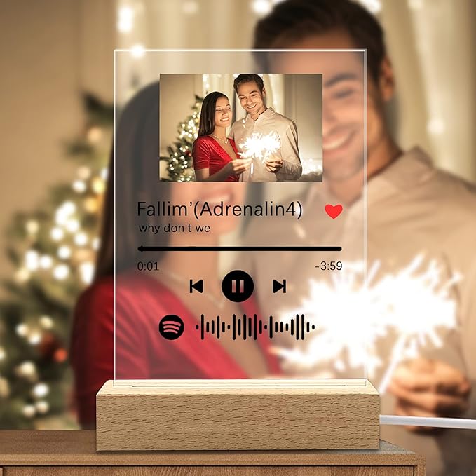 witfox Lampada Spotify Personalizzata Con Foto - Targa Spotify Glass Regali Foto Personalizzata Con Base Supporto a Scelta - Idee Regalo originale per San Valentino, Anniversari, Natale, 22X15cm ... Regalo Fidanzato Fidanzata Anniversario . Opzioni [ Regalo Fidanzata ] La foto con canzone spotify trasforma i ricordi e la musica in una cornice con canzone spotify adatta come regalo personalizzato per fidanzato, fidanzata, amici, mamma o papà. Le basi hanno dimensione 14*5cm*8mm spessore. Regalo Amica Targa Spotify Personalizzata 11x15 Cm, Spotify Glass Personalizzato Con Foto, Targa Codici Spotify Da Scaricare [ Targhetta Spotify Personalizzata ] Puoi scegliere di acquistare una base (in legno o in plexiglass) su cui incastrare le targhe spotify personalizzate. [ Canzone Spotify Regalo ] Clicca su “Personalizza ora”, carica la foto, inserisci frase/nomi, indica il titolo della canzone e il nome dell’autore: genereremo noi il lo spotify code.