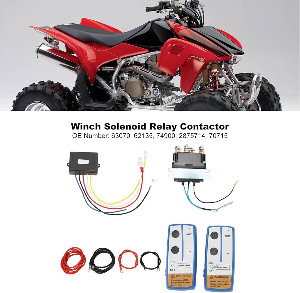 AMPIA APPLICAZIONE: il kit di controllo remoto del relè è ampiamente utilizzato in ATV, veicoli multifunzione, motoslitte, tosaerba, trattori da giardino, ecc. Set telecomando per verricello wireless combinato da 12 Volt Relè contattore magnetico per verricello 250A 30W con telecomando Relè contattore per verricelli ATV UTV, veicoli industriali KIT TELECOMANDO VERRICELLO 12 V 250 A Relè Solenoide Doppio Telecomando ALTA EFFICIENZA Il relè del verricello è dotato di una bobina in ottone, un motore di avviamento rapido con elevata potenza di avviamento e riduce la corrente dell'interruttore di avviamento. ALTA EFFICIENZA: il relè dell'argano adotta una bobina in ottone, motore ad avviamento rapido, con un'elevata potenza di avviamento, riduce la corrente dell'interruttore di avviamento. SCENE APPLICABILI: il kit relè verricello è adatto per la ricarica divisa o per qualsiasi veicolo che richieda relè ad alta potenza, efficiente e pratico. AMPIA APPLICAZIONE Il set di telecomando a relè è ampiamente utilizzato in ATV, veicoli multifunzione, motoslitte, tosaerba, trattori da giardino, ecc. LUNGA DURATA La vita meccanica della scatola di controllo del verricello è 10.000 volte, la vita elettrica è 1.000 volte e la durata è lunga.