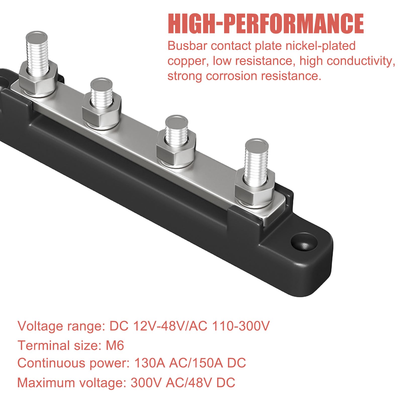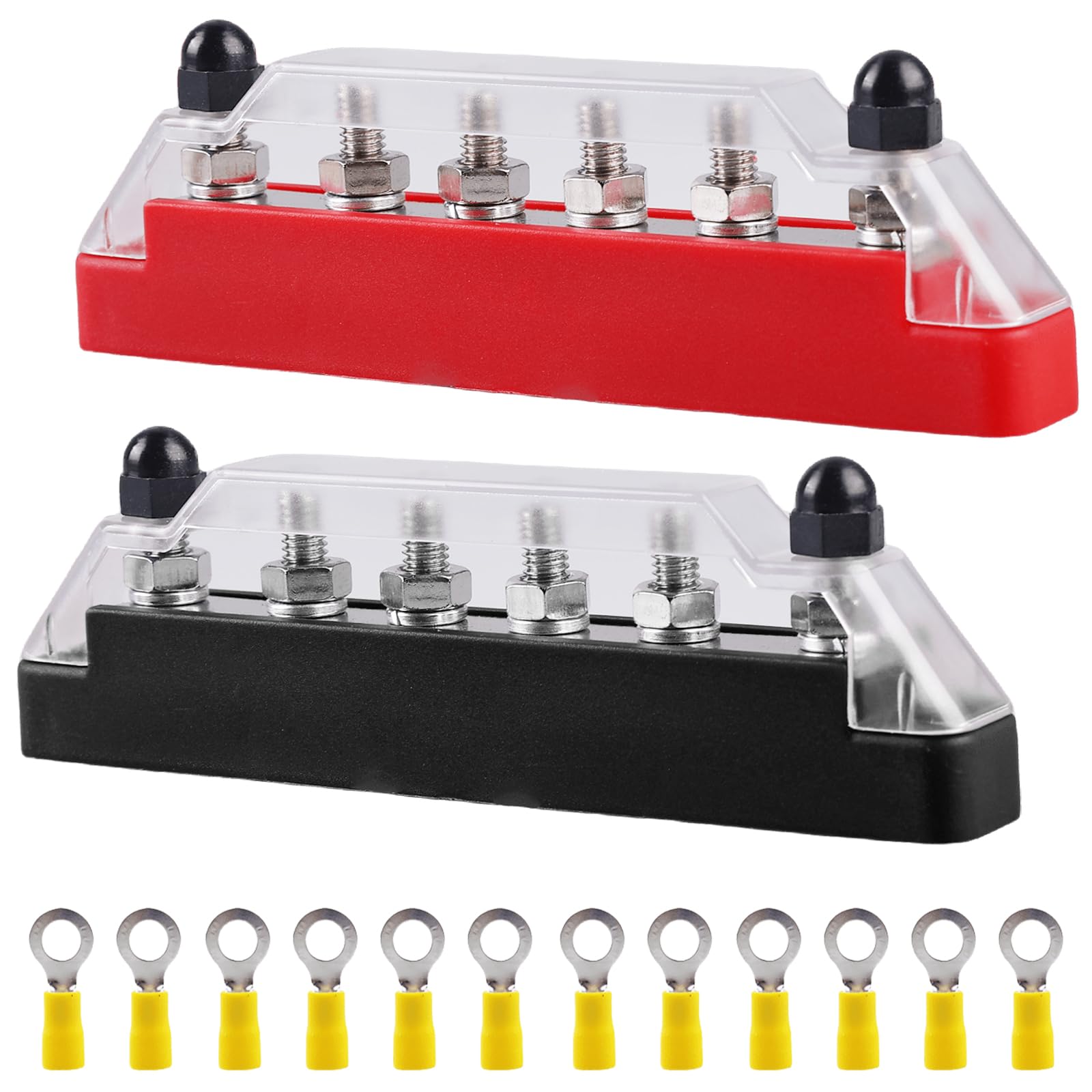 2 Binari Di Collettore 12 V-48 V, DC Binari Di Distribuzione Busbar 150 A, Blocco Di Distribuzione Dell'alimentazione Con 4 Bulloni Di Collegamento M6 Per Auto, Camper, Barca (rosso, Nero) : Amazon.it