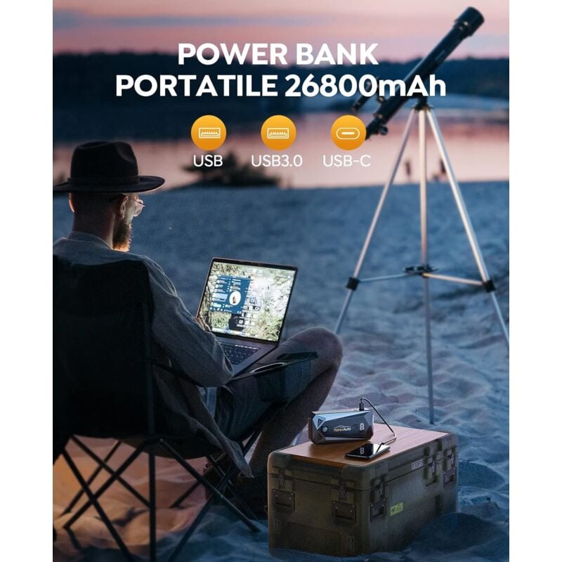 Avviatore Di Emergenza Per Auto 1500A 12000mAh Booster Batteria Con Compressore D'aria, Gonfiatore Per Pneumatici 4 In 1 150PSI, Luce LED, Power Bank | Leroy Merlin