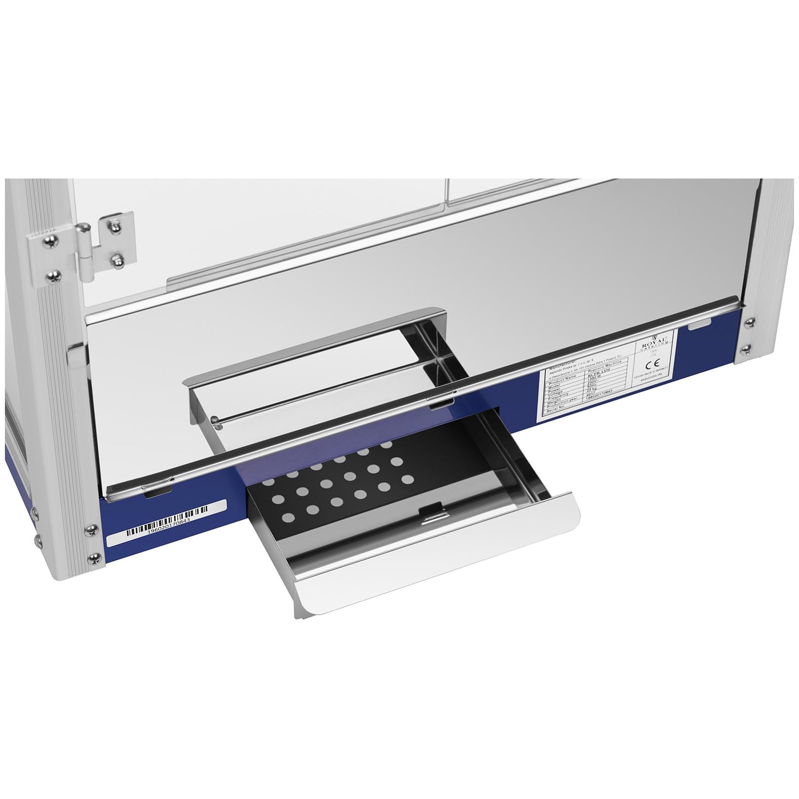 Royal Catering RCPS-1350 Macchina Per Popcorn Professionale Popcorn Maker (1350 W, Ca. 6 Kg/h, Acciaio Inox, Rivestimento Teflon, Paletta Incl
