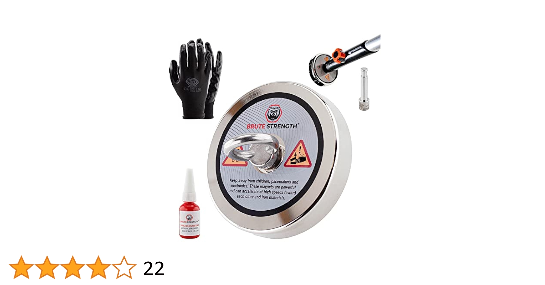 Brute Strength - Magnete Al Neodimio - Forte Magnete (700 Kg - Diametro 136 Mm) - Guanti - Colla Per Filettare - Vite Per Utilizzo Con Manico Telescopico - Magneti Da Pesca