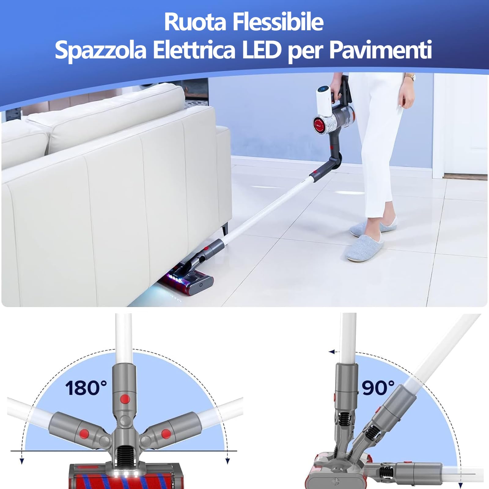 Saremo pronti ad aiutarti rapidamente a risolvere qualsiasi problema. Potente aspirazione da 40KPa]Il più recente aspirapolvere senza fili del 2024 è dotato di un motore aggiornato da 450W, offrendo una potenza di aspirazione fino a 40.000PA. Questo migliora notevolmente l'efficienza lavorativa. Dite addio alle minuscole Godrete di un'esperienza di pulizia silenziosa ed efficiente che renderà la vostra casa come nuova. 【Potente aspirazione da 40KPa】Il più recente aspirapolvere senza fili del 2024 è dotato di un motore aggiornato da 450W, offrendo una potenza di aspirazione fino a 40.000PA. Questo migliora notevolmente l'efficienza lavorativa. Ma se, per qualche motivo folle, non dovessi essere completamente soddisfatto o se i componenti del tuo aspirapolvere senza fili potente dovessero danneggiarsi, ti preghiamo di contattarci immediatamente! Non preoccuparti delle questioni post-vendita! La testa della spazzola è estremamente flessibile, con una mobilità laterale da 0° a 180° e una mobilità verticale da 0° a 90°, e dispone di luci LED brillanti per una migliore pulizia degli angoli. 【Assistenza clienti 24 ore su 24 e garanzia di 2 anni】Offriamo una garanzia di 2 anni e un servizio clienti attivo 24/7. Abbiamo piena fiducia in questo aspirapolvere senza fili e siamo sicuri che sarai soddisfatto. Il serbatoio da 1,5 litri è sufficiente per pulire l'intera casa. Aspirapolvere Con Filo Rowenta X-FORCE 14.60 Aqua Aspirapolvere Senza Fili Potente, Aspira E Lavapavimenti, Scopa Scopa Elettrica 【Spazzola anti-groviglio flessibile】scopa elettrica senza fili è dotato di una spazzola a rullo anti-groviglio a forma di V migliorata, che assicura che i peli entrino agevolmente nel condotto dell'aspirapolvere per peli di animali domestici senza aggrovigliarsi. Questo aspirapolvere senza fili, una volta completamente carico, è sufficiente per pulire una stanza di 90 metri quadrati per ben 3 volte.