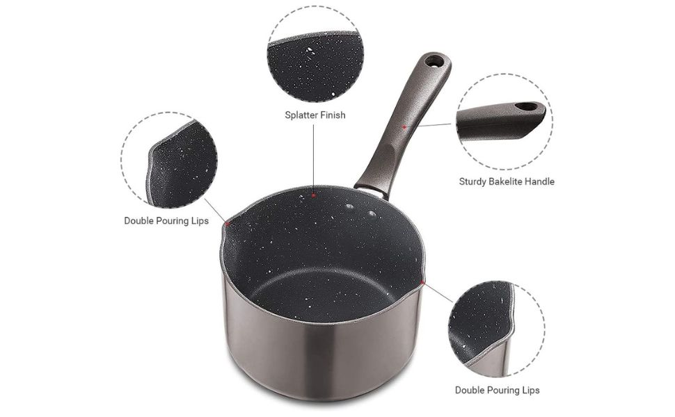Compatibile con tutti i piani cottura inclusi quelli a induzione Manico per una presa sicura, solida e confortevole Set Pentole Pentola Per Latte Da 14 Cm, 1 Litro, In Acciaio, Con Doppio Bordo Padella Acciaio Inox Lo smalto di alta qualità rende facile la pulizia e lavabile in lavastoviglie Distribuzione del calore, per un maggiore controllo della temperatura