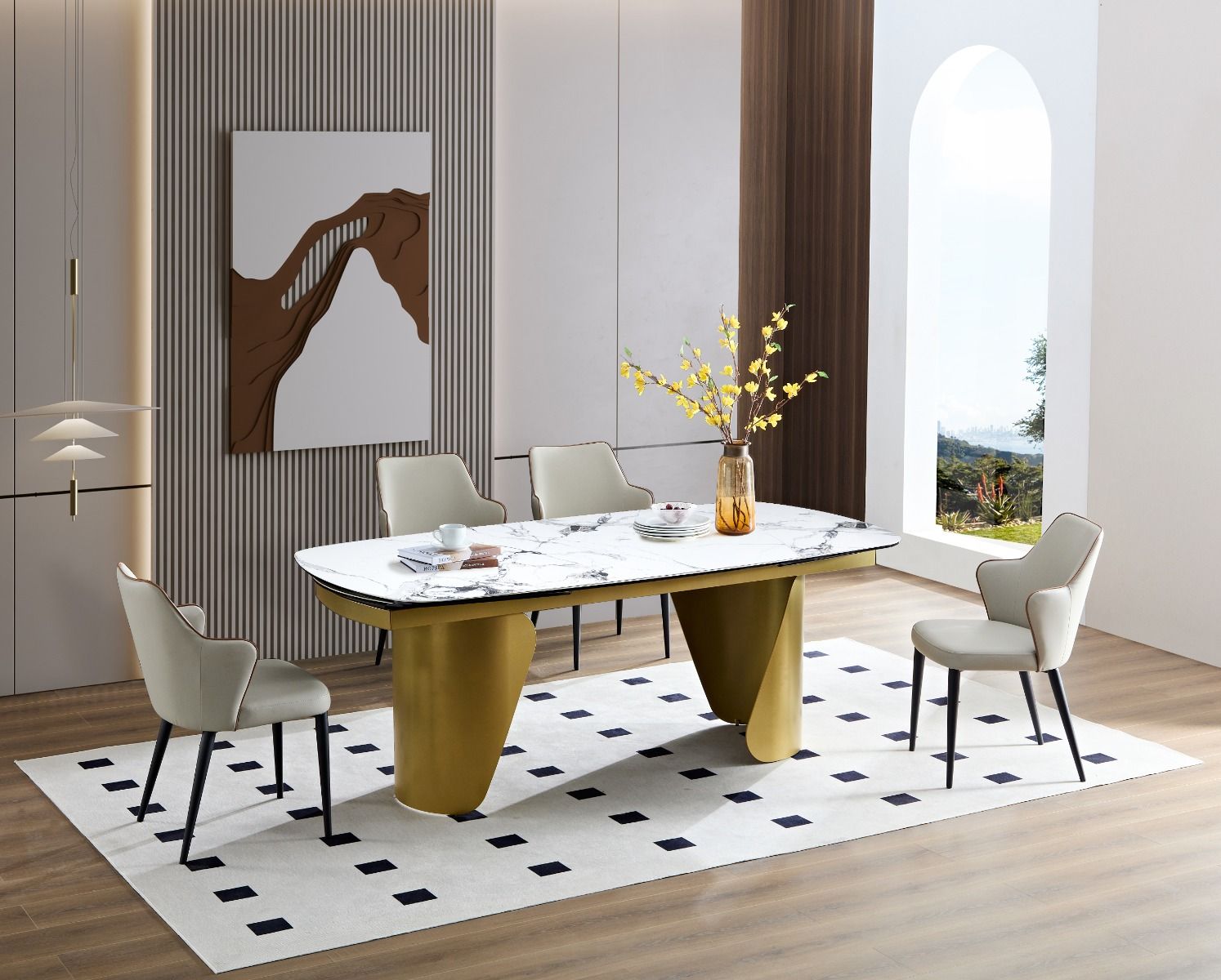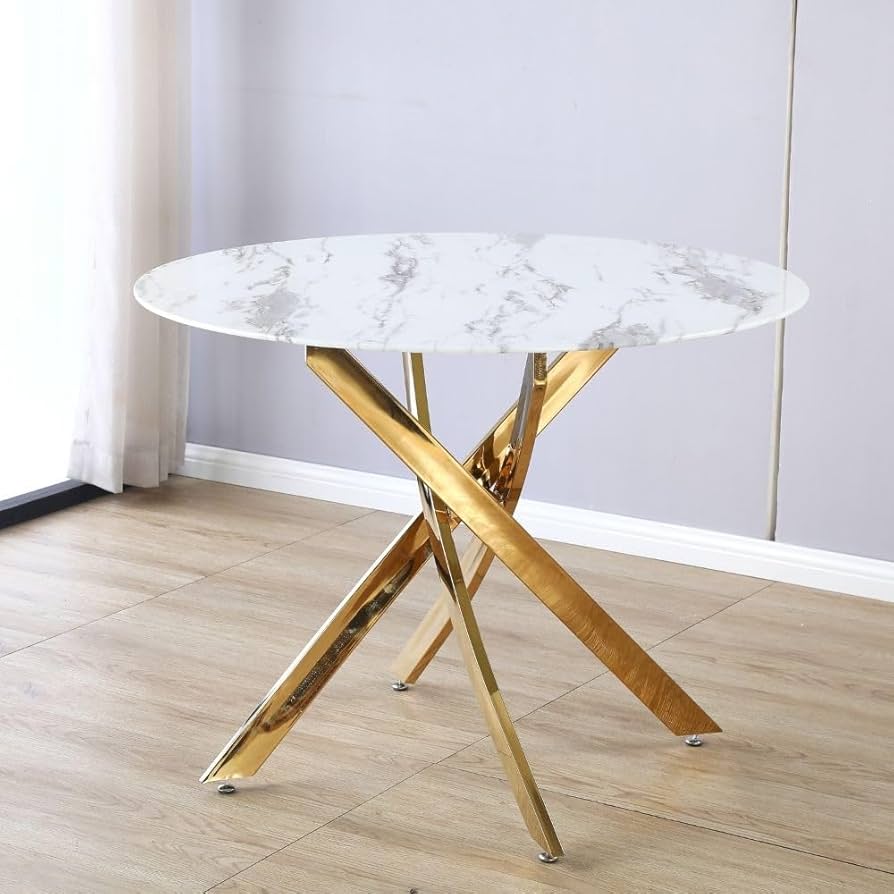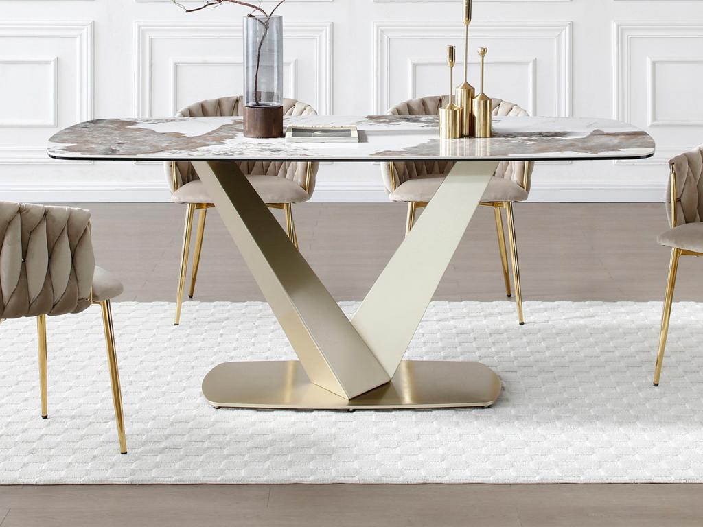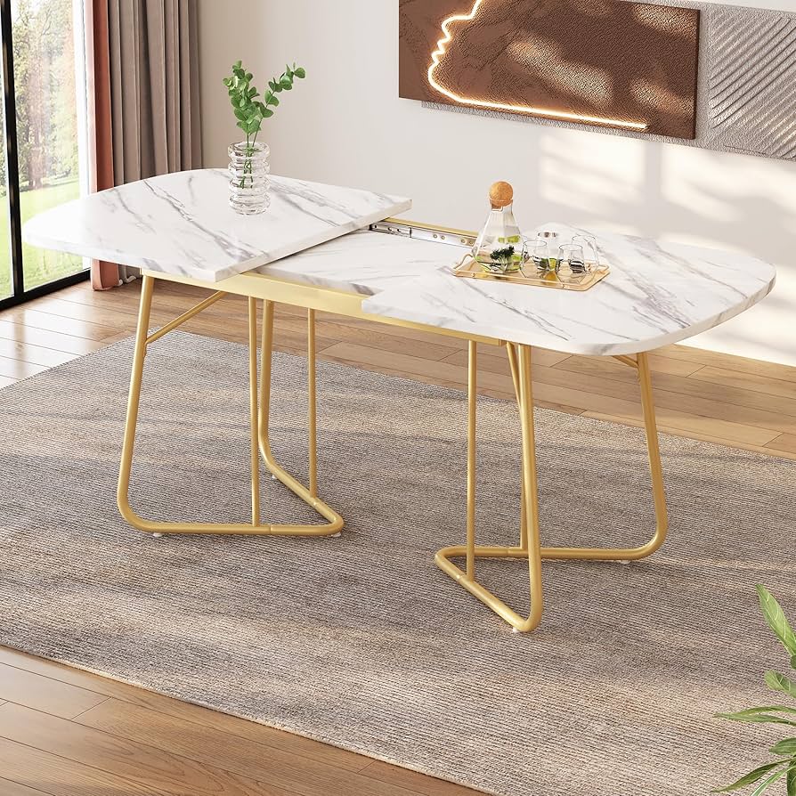 Inoltre, i piedini del tavolo sono dotati di quattro tappi e due piedini regolabili per mantenere l'equilibrio su superfici diverse e prevenire graffi, dimostrando la nostra attenzione ai dettagli e il nostro impegno nella qualità. In questo modo, ottiene una soluzione versatile per ottimizzare gli spazi di vita. 【TAVOLO ROBUSTO】 Il piano del tavolo da cucina è composto da 3 pannelli durevoli. Le gambe del tavolo sono dotate di quattro tappi che proteggono il pavimento da graffi. Crea uno spazio alla moda nella tua casa o nel tuo ufficio con questo sublime tavolino di design 5 MOTIVI PER SCEGLIERE IL NOSTRO TAVOLO DA PRANZO Il tavolo da pranzo ospita fino a 8 persone Il tavolo da pranzo con piano effetto di marmo Il tavolo con gambe dorate in metallo Il tavolo da cucina funge da tavolo da lavoro Il tavolo da pranzo regge fino a 150 kg Specifiche: Colore: oro+bianco Materiale: legno, metallo Dimensioni del tavolo da pranzo: 160x60x76 cm (L x P x A) Capacità di carico: 150 kg Peso netto: 19,3 kg COSA RICEVETE 1 x tavolo da pranzo 1 x manuale d’istruzioni Attenzione: Se avete domande, vi preghiamo di contattarci, vi risponderemo entro 24 ore. 【TAVOLO MULTIUSO】 Il suo aspetto elegante e le dimensioni adeguate gli consentono di assumere ruoli multipli in diversi contesti. Tavolo Da Pranzo Cucina POVISON Tavolo Da Pranzo Barocco 140 Cm Per 4 Persone, Tavoli Da Tavolo Cucina Che si tratti di godere di una cena familiare intima o di ospitare un vivace evento sociale, questo tavolo rappresenta la scelta ideale per conferire un'atmosfera elegante a ogni occasione. Ad esempio, può essere utilizzato come tavolo conferenze quando non si mangia, o come scrivania per lavoro o studio in casa. 【TAVOLO DORATO】 Il tavolo da pranzo unisce un piano in legno con finitura effetto marmo bianco a una struttura metallica dorata, mostrando uno stile sobrio ma lussuoso. Il telaio in metallo robusto permette un forte carico di 150 kg. La texture del marmo porta una fusione di naturalezza e sensualità al tavolo, mentre la struttura dorata offre un tocco moderno e sofisticato, adatto a qualsiasi stile decorativo. La superficie è facile da pulire e resistente a graffi o macchie, ideale per l'uso quotidiano. Questo design non solo aggiunge un senso di strati visivi, ma garantisce anche stabilità.