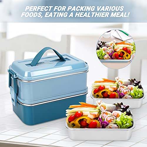LUZOON Bento Lunch Box,1400ml Bento Box Con 3 Scomparti E Posate Per