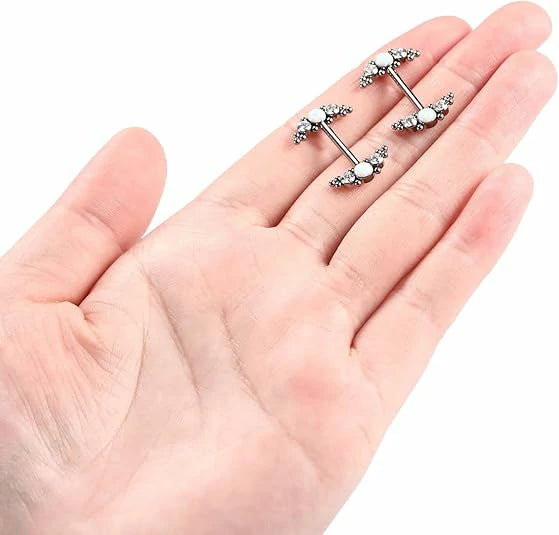 14G Titanium Nipple Barbell CZ And Opal Nipple Piercing Jewelry 14mm Nipple Barbell