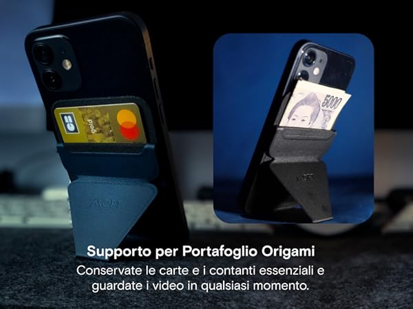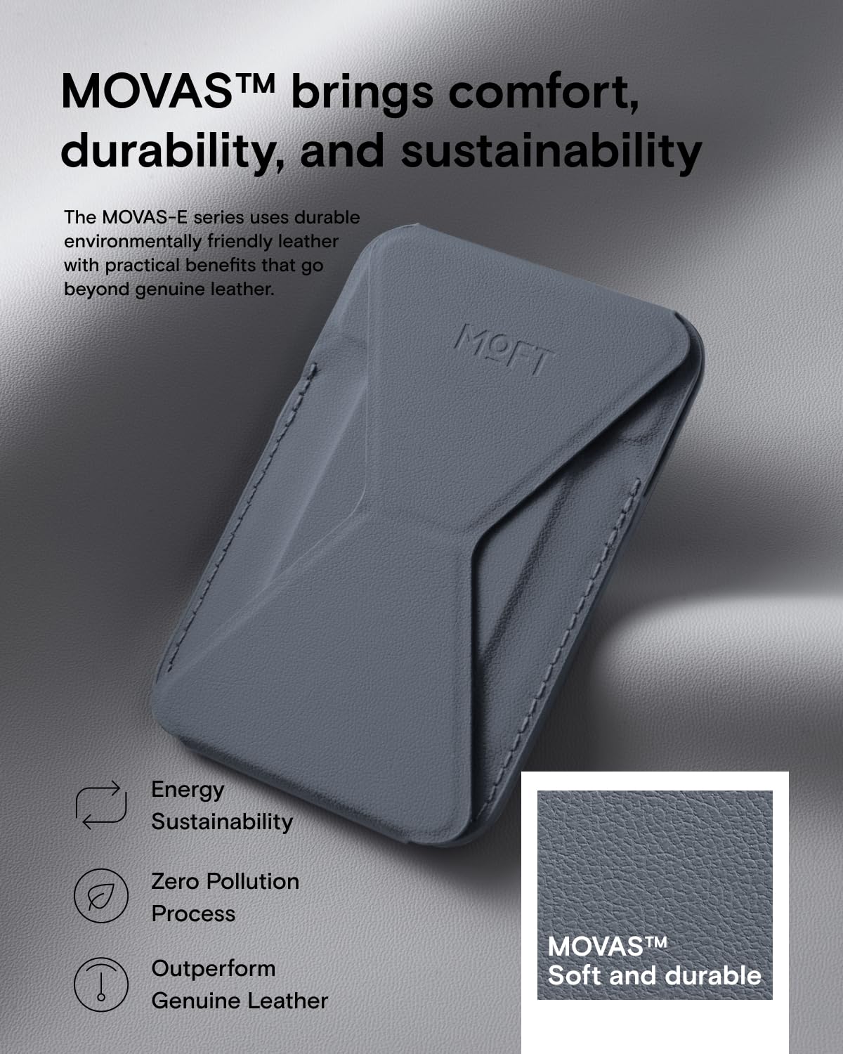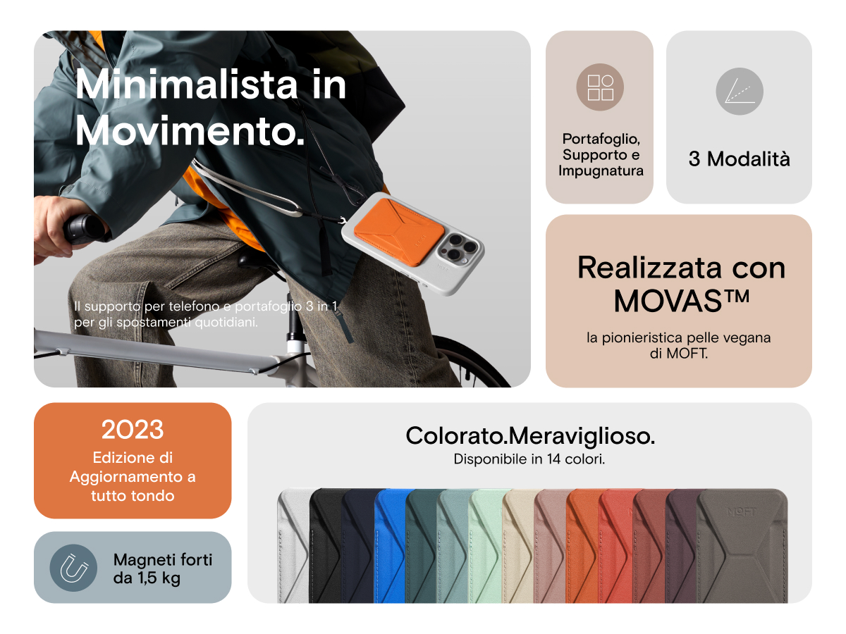 Wallet Magsafe MOFT Snap Portafoglio Magnetico Per IPhone Serie 15 14 13 12, Supporto Magnetico Per Telefono In Tripod For 1 Magnetismo Potente 2 Sottile e Leggero 3 Progettazione di Origami MOFT MagSafe Portafoglio Supporto per iPhone Serie 16/15/14/13 Compatibile con MagSafe, MOVAS Pelle Vegana Supporto Magnetico per Telefono con 3 Angoli di Visione, 2 Porta Carte (Nero Jet) 4,3 su 5 stelle 91 [Versatilità di Visualizzazione] - Grazie al design pieghevole, è possibile dispiegarlo rapidamente e trasformarlo in un supporto a tre modalità: Modalità fluttuante per le videoconferenze, modalità verticale per la navigazione e le videochiamate e modalità orizzontale per la visione di film. [Magneti Forti] - La pelle MOVAS, più sottile, consente di utilizzare magneti più forti senza aggiungere ingombro. Si attacca saldamente al telefono con una potente forza magnetica fino a 15N, equivalente al peso di 6 dispositivi iPhone 14 Pro Max, e funziona ancora meglio se abbinato alle custodie MOFT Snap. [Innovazione Origami] - Radicata nella nostra filosofia di design unseen, unfelt, unnoticed (non visto, non sentito, non notato), è intuitiva da usare con una sola operazione di piegatura e dispiegamento per una mobilità efficiente, esteticamente piacevole quando è piegata piatta sul telefono per lo stile di tutti i giorni, e divertente da esplorare con il meccanismo magnetico. [Cuoio Vegano Leader del Settore] - Realizzato con il cuoio Vegano MOVAS, un equilibrio di morbidezza, sostenibilità e durata, va oltre il beneficio dell'ambiente con un processo a inquinamento zero e ha prestazioni superiori in termini di elasticità e resistenza all'abrasione.