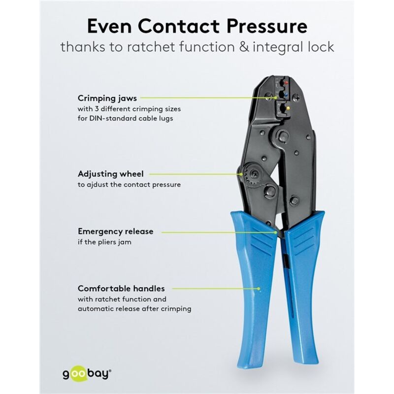 La pinza crimpatrice soddisfa determinate norme o certificazioni? La pinza crimpatrice WETEC è progettata in modo da soddisfare i requisiti per la lavorazione di manicotti terminali secondo DIN 46228. La pinza crimpatrice è facile da usare, soprattutto per gli utenti con poca esperienza? Sì, la pinza crimpatrice WETEC è particolarmente facile da usare, anche per utenti con poca esperienza. Realizzato in robusto acciaio al carbonio, offre precisione e versatilità in ogni applicazione. Faston Maschio Femmina Con Pinza WETEC Pinza Crimpatrice Per 15 – 25 – 35 Mm² | Per Manicotti Isolati E Non Isolati Secondo DIN 46228, Con Meccanismo A Cricchetto E Sblocco Dei Punti Di Pressione, Pinza Per Manicotto, Pinza Crimpatrice Faston Non Isolati Adatto per una sezione del conduttore di 16, 25 e 35 mm², che copre un'ampia gamma di applicazioni. La pinza è dotata di un meccanismo a cricchetto e di sblocco del punto di pressione. Massima efficienza grazie alla pinza a pressione con una sola mano – Con inserti intercambiabili con profilo pressato, sblocco forzato regolabile e Tuttavia, va notato che non sono inclusi nella confezione. La pinza crimpatrice all'avanguardia, versatile e affidabile – ideale per terminali isolati e non isolati. Imposta la forza di pressione perfetta – La pinza crimpatrice può essere regolata individualmente, in modo da poter personalizzare il processo di crimpatura esattamente in base alle proprie esigenze. Descrizione prodotto Per uso professionale Pinza a pressione per capicorda La pinza a pressione con una sola mano è uno strumento versatile che offre la massima efficienza e precisione nella lavorazione di capicorda isolati e non isolati secondo la norma DIN. I clienti hanno l'opportunità di acquistare separatamente inserti aggiuntivi o speciali per profili a pressione. Gli inserti del profilo pressato sono intercambiabili? Sì, gli inserti del profilo pressato della pinza crimpatrice WETEC sono intercambiabili. La pinza è progettata ergonomicamente per garantire il massimo comfort e facilità d'uso.