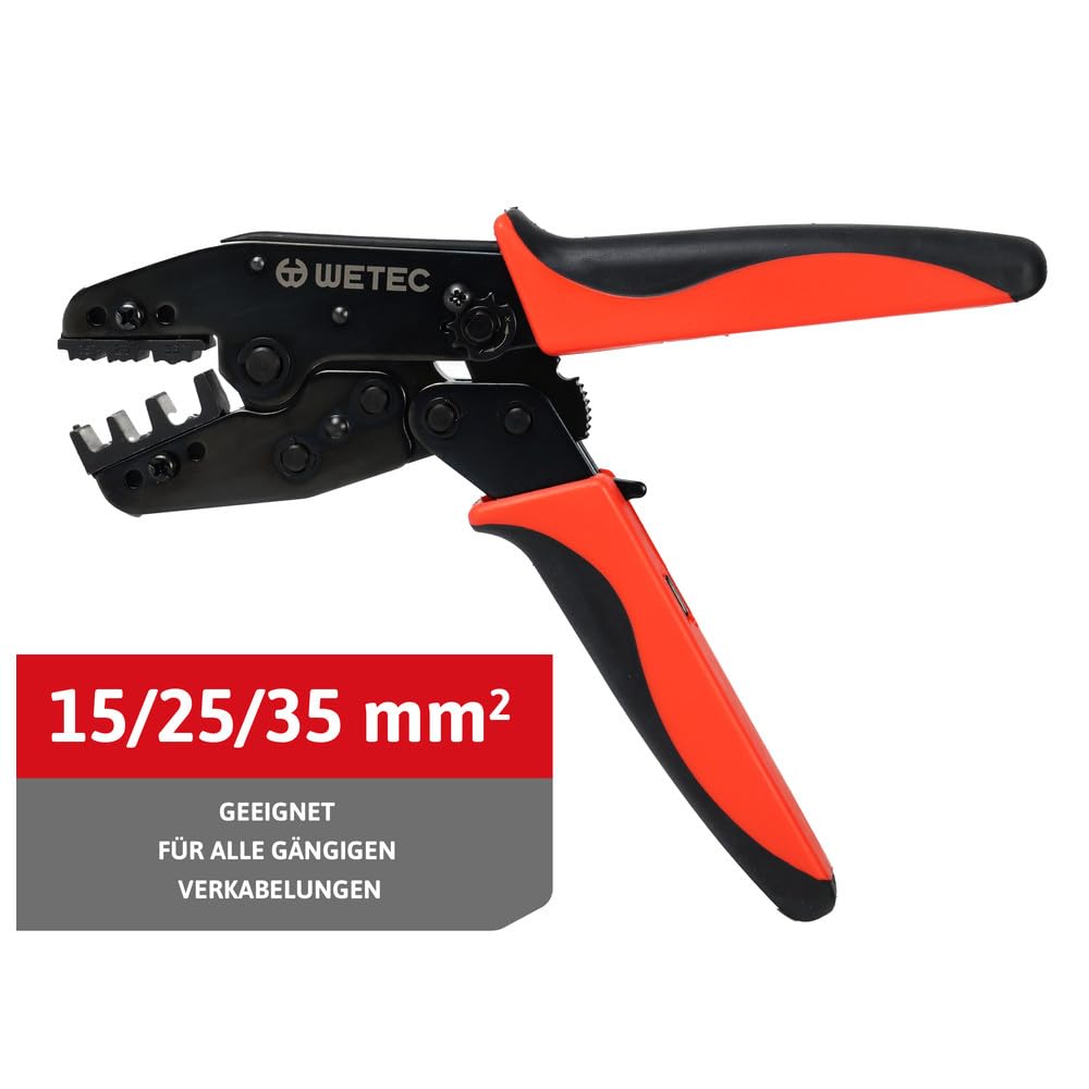 WETEC Pinza Crimpatrice Per 15 – 25 – 35 Mm² | Per Manicotti Isolati E Non Isolati Secondo DIN 46228, Con Meccanismo A Cricchetto E Sblocco Dei Punti Di Pressione, Pinza Per Manicotto, Pinza