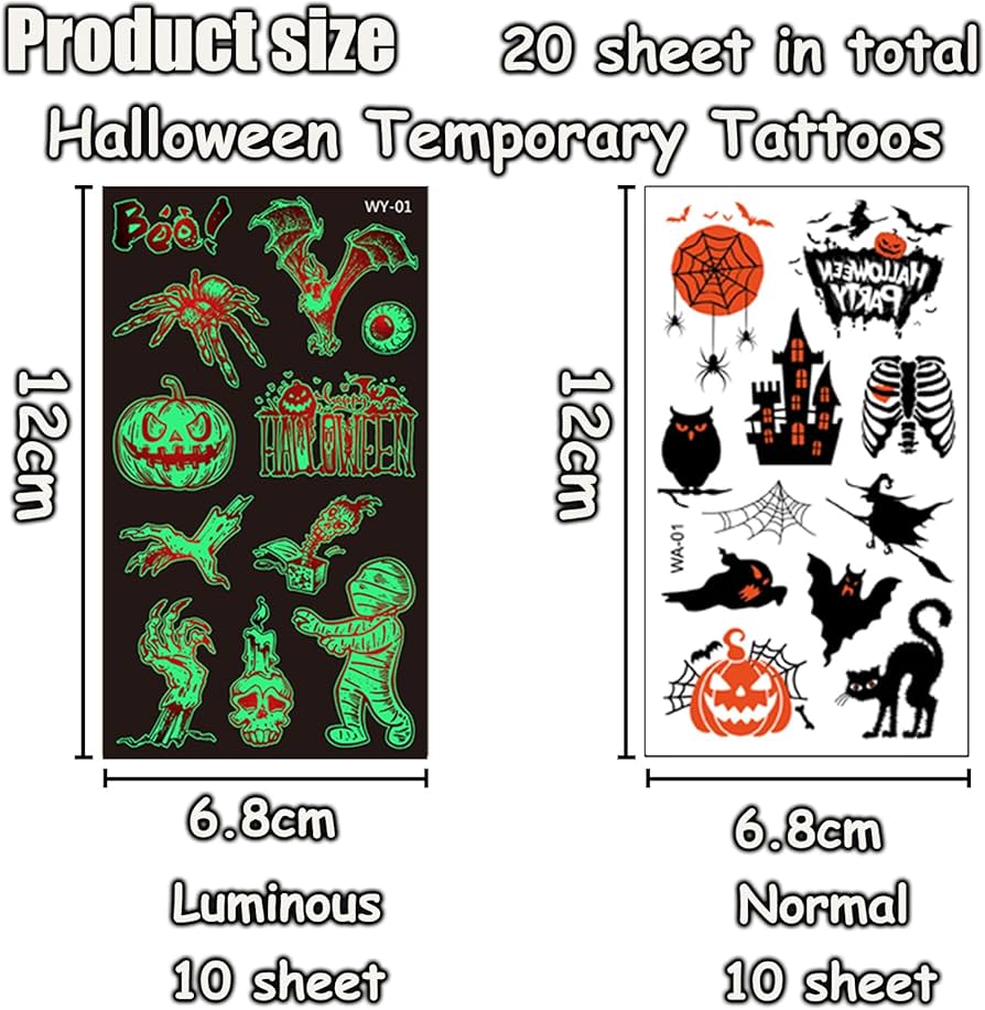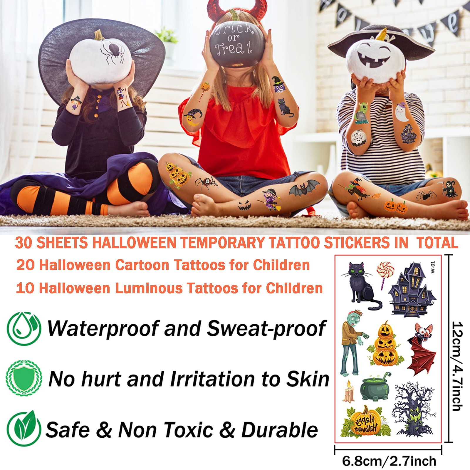 Ideali per feste e regali. Aderiscono facilmente alla pelle. Accessori Halloween carini. Trucchi Adesivi Halloween 15 Fogli Tatuaggi Temporanei Di Halloween, Halloween Cicatrice Finta Zombie Scars Tatuaggi Adesivi Con Falsi Scab Sangue Costume Puntelli Di Trucco, Decorazioni Cosplay Feste Di Halloween Tatuaggi Halloween Ferite Resistenti e colori vivaci, perfetti per la pelle dei bambini. Bagnare, premere per 30 secondi, rivelare! Il nostro obiettivo è la vostra soddisfazione. 30 Fogli Tatuaggi Temporanei per Bambini, Halloween Tatuaggi Set , Includere 20 Fogli Tatuaggio Finti e 10 Fogli Luminous Adesivi Tatuaggi , Decorazioni Forniture Cosplay per Feste di Halloween Zucche, streghe, pipistrelli e altro. Procedura di applicazione semplice. Adatti per Halloween, il Giorno dei Morti e altro.