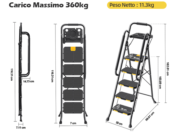 MASKO® Stepladder, Scaletta, Caricabile Fino A 150 Kg, Antiscivolo, Inclusi Guanti, Vaschetta Porta Attrezzi E Dispositivo Di Bloccaggio Automatico, 3 Livelli - Nero : Amazon.it: Fai Da Te
