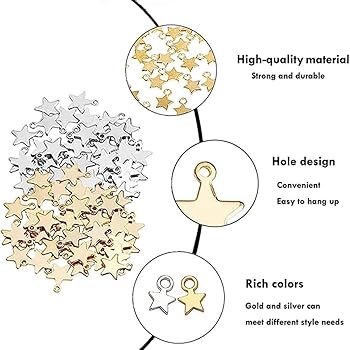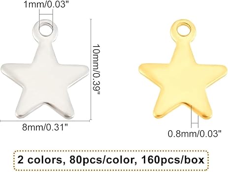 160 Pezzi Ciondolo Stelline, Charm Piccoli In Lega, Mini Ciondoli A Stella, Pendenti A Stella In Metallo, Utilizzato Per Fare Gioielli, Decorazioni, Artigianato (Oro, Argento