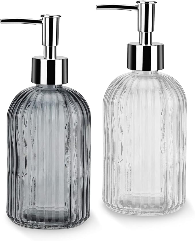 2 BOTTIGLIE - Dispenser Sapone A Mano 18 Oz Sapone Liquido Ricaricabile Vetro Trasparente EUR 9