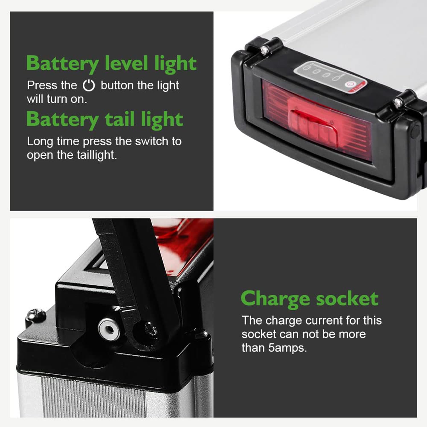 ZHIKAN Batteria E-bike 36V-15.6Ah/18Ah/21Ah;48V-15.6Ah/18Ah/20Ah Batteria Agli Ioni Di Litio Per E-bike Adulti Con Caricatore 200W - 1200W, Nero, 36V /48V. (48V20Ah