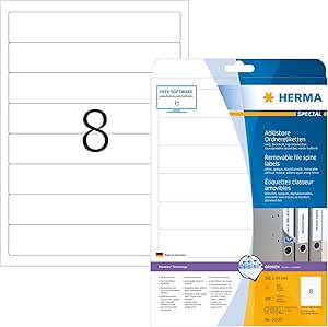Per raccoglitori con tasca sul dorso, facili da cambiare Cartone bianco, staccabile in modo sicuro grazie alla microperforazione Le migliori offerte per HERMA Etichette per Raccoglitori, 190 x 30 mm, Etichette Adesive A4 per Stampant sono su Confronta prezzi e caratteristiche di prodotti nuovi e usati Molti articoli con consegna gratis Etichette per nomi e tessuti Etichette HERMA in formato DIN A4 per l'ufficio e la casa Etichette universali Tecnologia della stampante: laser/inkjet 225 etichette/25 foglio/9 etichette per foglio Creare e stampare le etichette online Homepage di HERMA Ufficio e casa Software Assistente per le Etichette online Modelli di design subito utilizzabili Aiuto videos Nessuna installazione di software Assistente di grafica Etichette Raccoglitori Personalizzate HERMA Etichette Per Raccoglitori, 192 X 61 Mm, Etichette Adesive A4 Per Stampante, 4 Etichette Per Foglio, Blu Foglio Adesivo A4 Per Stampante