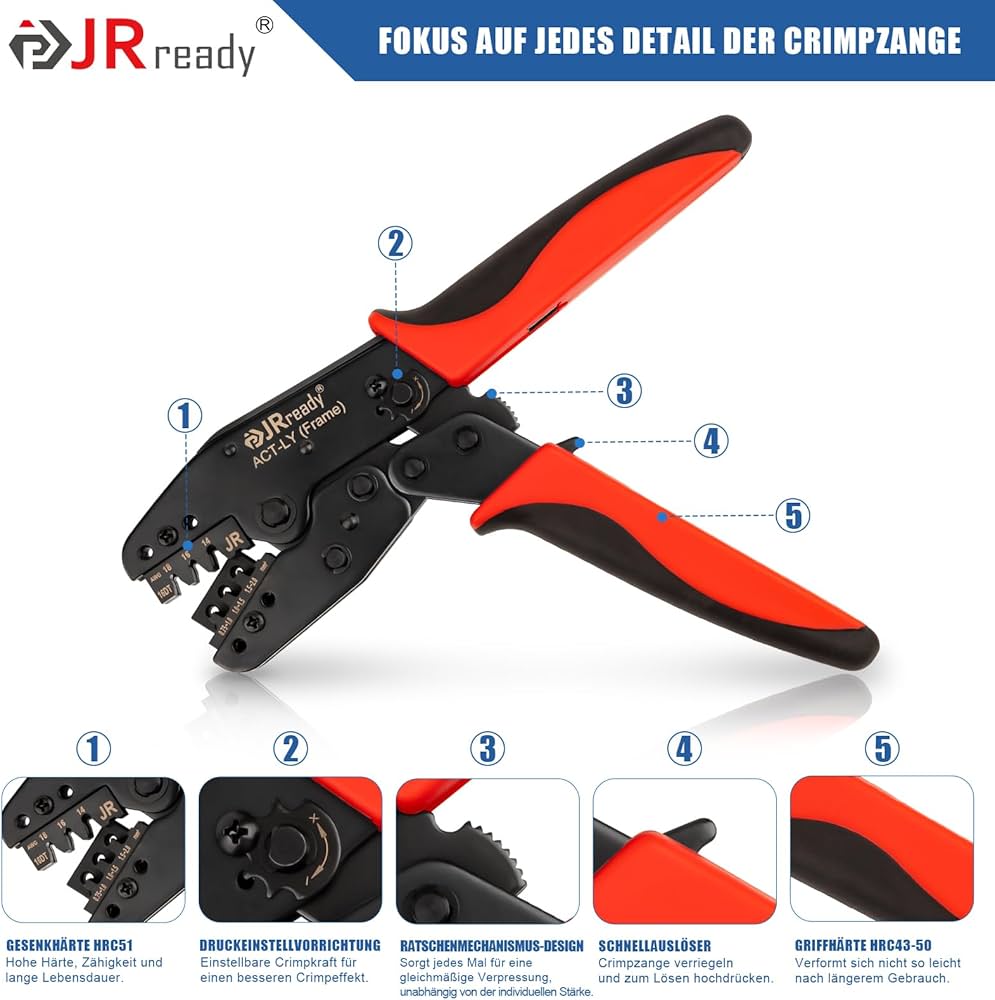 I connettori per autoveicoli sono realizzati in nylon PA66, che ha una certa termostabilità e può essere utilizzato in modo sicuro a temperature comprese tra - 40°~+125%, consentendo ai connettori di resistere a lungo e all'usura. Tools Kit JRready ST6359 K Connettori Deutsch, 2 3 4 6 8 Connettori DT A 12 Pin, Dimensioni 16 Contatti Solidi 16-20AWG, Strumento Di Crimpatura Deutsch Connettori Automotive JRready ha sviluppato un'alternativa senza piombo che soddisfa i requisiti della direttiva UE. Questi connettori impermeabili sono molto stabili e possono essere utilizzati su aerei, auto, moto, scooter, camion, motoscafi e barche. Buy JRready ST6359 Deutsch Connector Kit , 2 3 4 6 8 12 Pin DT Connectors, Size 16 Solid Contacts 16-20AWG, Deutsch Crimp Tool, Deutsch Pin Removal Tool. ... You're covered for up to $5,000 in total claims per 12 -month period. Cancel anytime 【Strumento di Rimozione Deutsch】Lo strumento di rimozione Deutsch è realizzato in materiale di lega ad alta durezza, trattamento termico ad alta temperatura, durezza Rockwell HRC>55, può essere utilizzato per lungo tempo, la punta non è deformata, forte e durevole, adatto per l'uso a lungo termine con connettori Deutsch. 【Pinze a Crimpare Professionali】Il corpo di questa pinza a crimpare deutsch è in acciaio al carbonio ad alta durezza con trattamento all'ossido nero per la resistenza all'ossidazione e alla corrosione e la durata; trattato termicamente a HRC45, lo speciale processo di produzione lo rende duro e resistente. PROTEZIONE TERMICA IN NYLON PA66 【Guarnizione del Filo Migliorata】Rispetto ai fili da 16AWG, i fili da 14AWG offrono una maggiore ridondanza e prestazioni elettriche più affidabili. Questo kit di terminali deutsch viene fornito con i nostri strumenti di installazione e rimozione per facilitare la crimpatura dei fili e l'installazione dei connettori DT. I tappi di tenuta impediscono ai contaminanti di entrare nei fori inutilizzati del connettore e mantengono l'integrità della tenuta senza compromettere il normale utilizzo del connettore. USO FLESSIBILE DEI CONNETTORI TERMINALI SENZA PIOMBO JRREADY I processi senza piombo proteggono l'ambiente e il futuro. 【Completo di Terminali Deutsch】La coppia di 185 terminali deutsch nichelati da 16 gauge è molto stabile e conduttiva e può essere utilizzata con fili da 14-18AWG con una capacità continua di 13 ampere. Abbiamo sviluppato una varietà di guarnizioni gialle personalizzate (2 poli, 3 poli, 4 poli) per i fili da 14AWG, che offrono una migliore resistenza all'acqua e garantiscono un facile inserimento. È possibile sostituire le guarnizioni in base alle esigenze delle diverse applicazioni e mantenere la connessione elettrica.