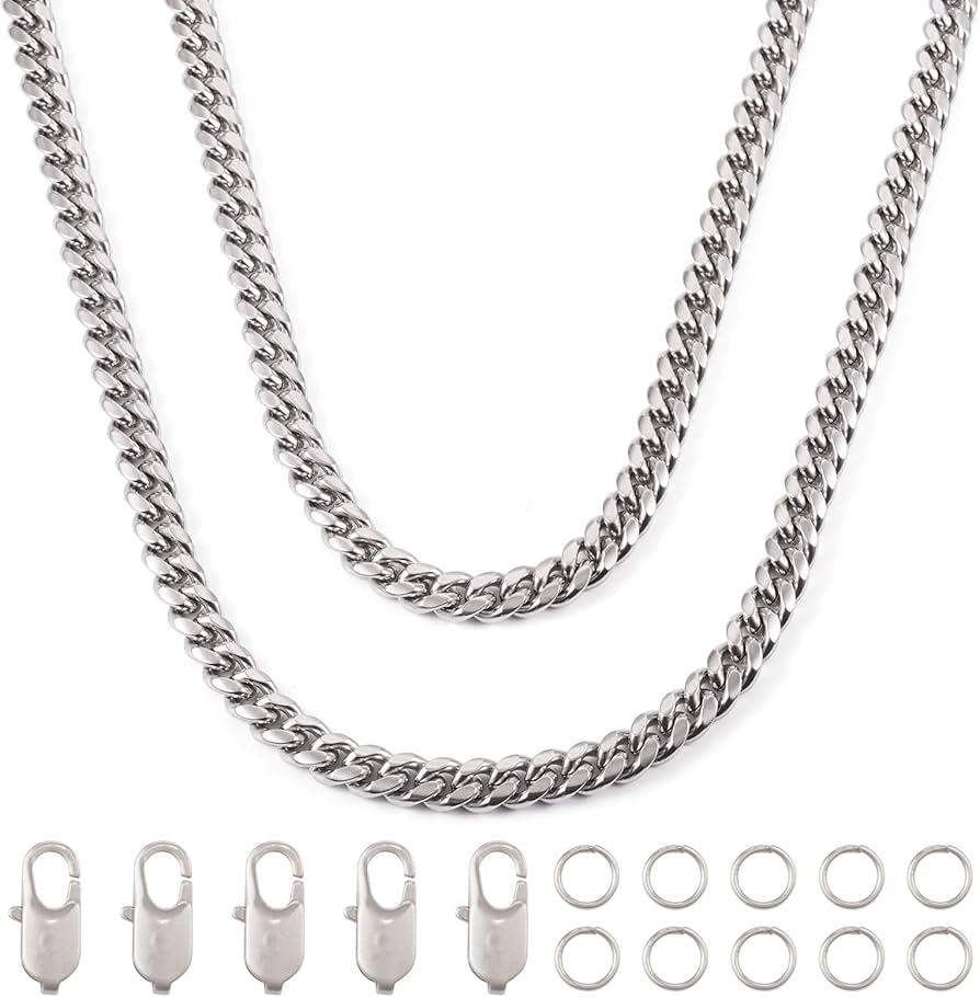 PandaHall offre gioielli di cool qualà Collane Acciaio Inossidabile fatto a mano per aggiungere più colore alla tua va. Potremmo personalizzare per il vostro disegno unico Regalo ideale: con il kit di collane, puoi combinarle o condividerle con i tuoi cari, rendendolo una scelta regalo perfetta per compleanni, anniversari o qualsiasi occasione speciale. Elegante e alla moda: l'elegante colore dell'acciaio inossidabile aggiunge un tocco moderno e sofisticato al tuo look, rendendo queste collane adatte sia per uomini che per donne. Set Gioielli Donna PandaHall Catene A Maglia Barbazzale In Ottone, 2,9 X 2,1 X 1 Mm, Placcate In Oro 18 Carati, Catena Cubana In Metallo, Con Rocchetto, Per Braccialetti Fai Da Te E Creazione Di Catenina Acciaio Donna Dimensioni: ogni collana è accuratamente progettata con diverse lunghezze e larghezze per adattarsi a diverse preferenze e stili. Qualità premium: realizzate in acciaio al titanio di alta qualità, queste collane a catena sono durevoli e resistenti all'ossidazione, garantendo una bellezza di lunga durata.
