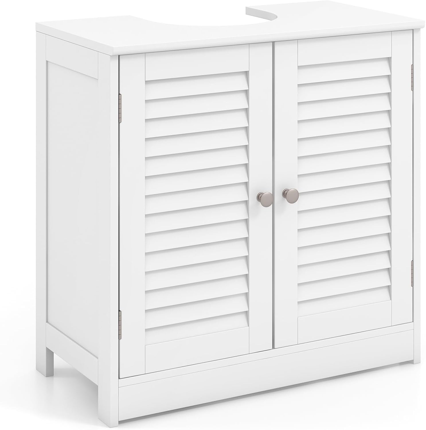 COSTWAY Mobile Sottolavabo Per Bagno, Armadietto A Terra Con 2 Ante A Persiana, Ripiano E Taglio A U 24 X 20cm, Organizer Moderno E Salvaspazio Per Pr | Leroy Merlin