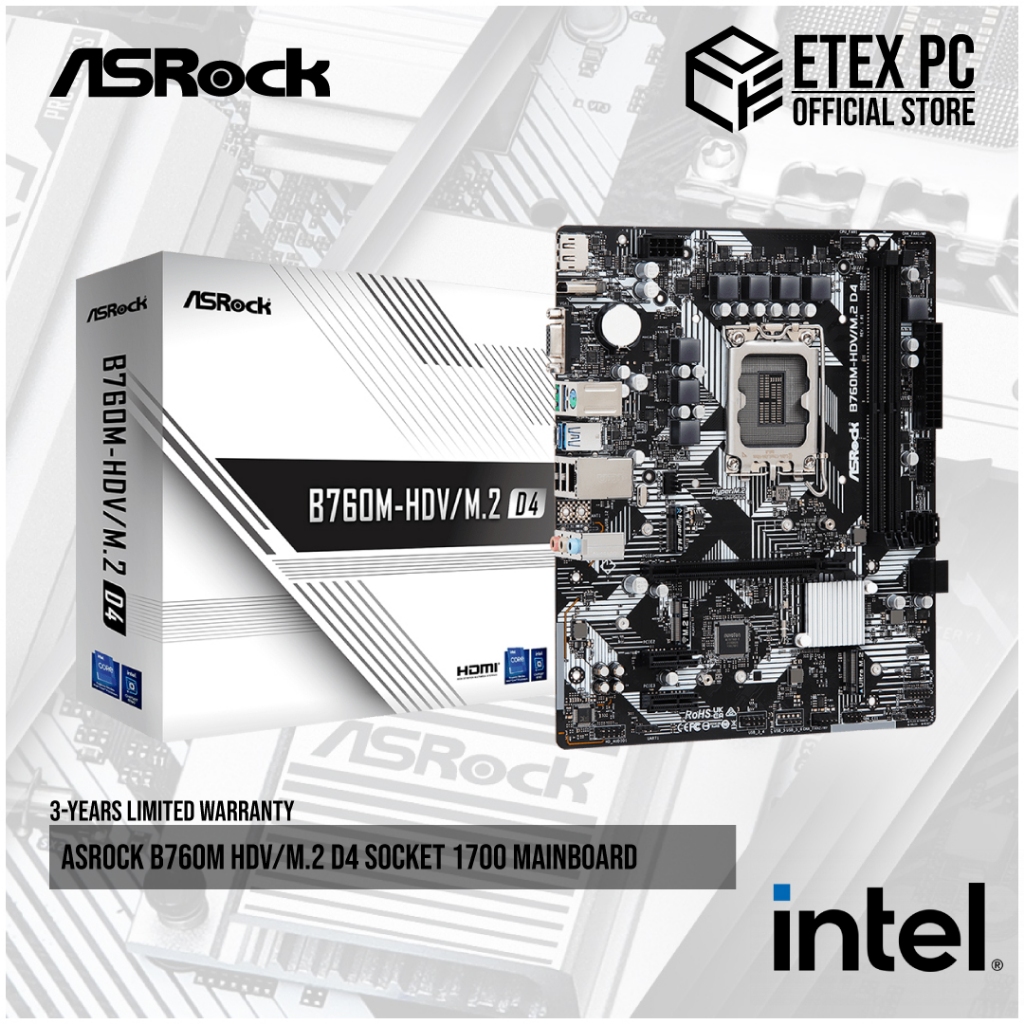 B760M-HDV/M.2 D4 Intel LGA 1700 microATX Motherboard Featuring sturdy components and completely smooth power delivery to the CPU, offering enhanced performance for gamers. Supports PCI Express 4.0 M.2 SSDs, it is capable of perform twice the speed compare Scheda Madre Intel ASRock B760M-HDV/M.2 D4 - Motherboard - 3-year Warranty Motherboard Am5 2 D4 Intel B760 LGA 1700 micro ATX
